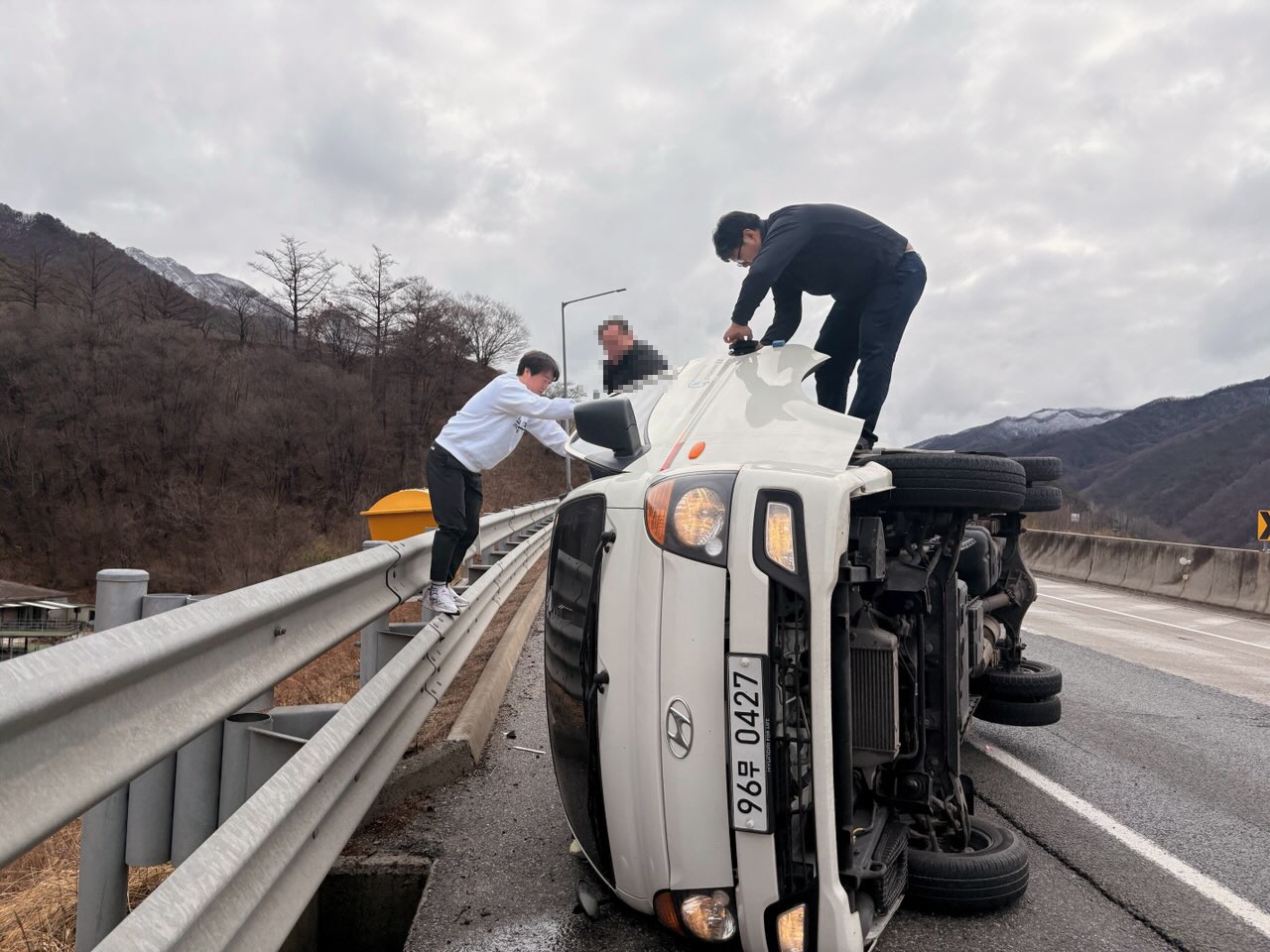 태백소방서 대원들, 퇴근길 고속도로 전도차량서 인명 구조