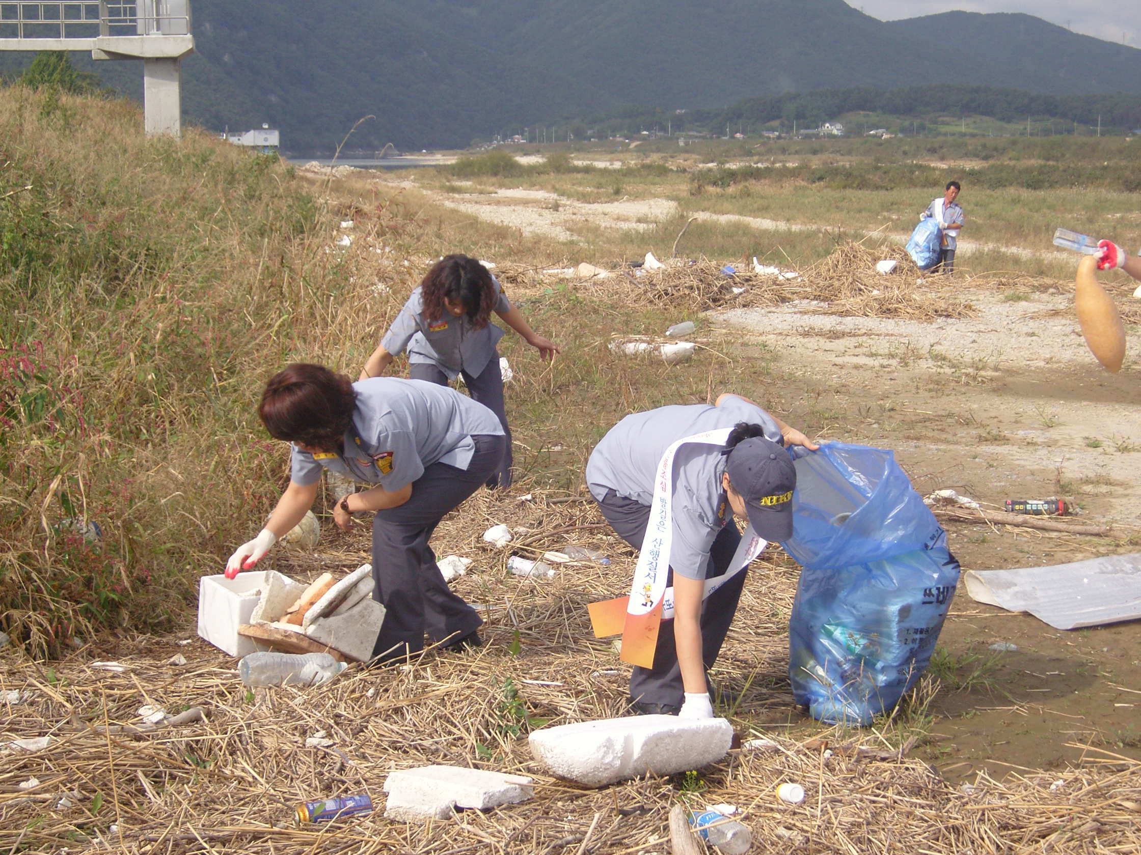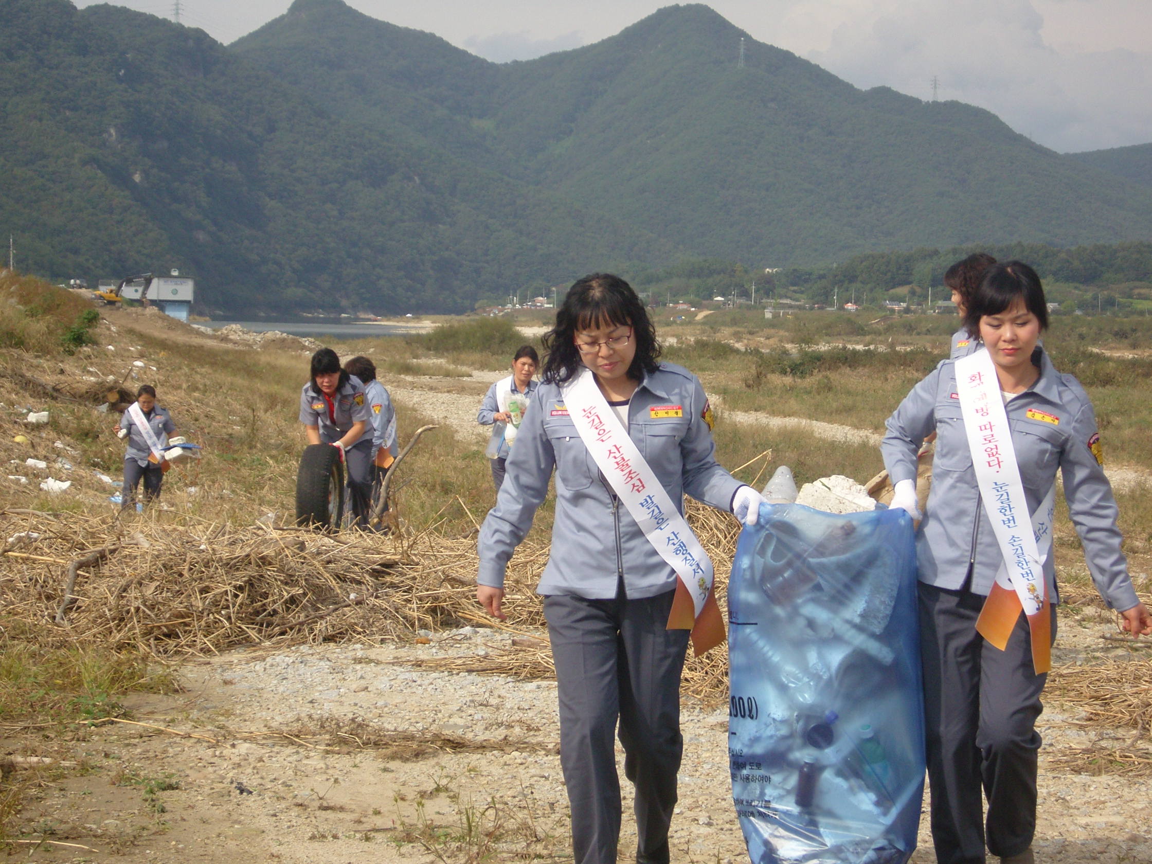 하천일대에서 하천정화작업을 하며 화재와의 전쟁 캠페인을 하였습니다.