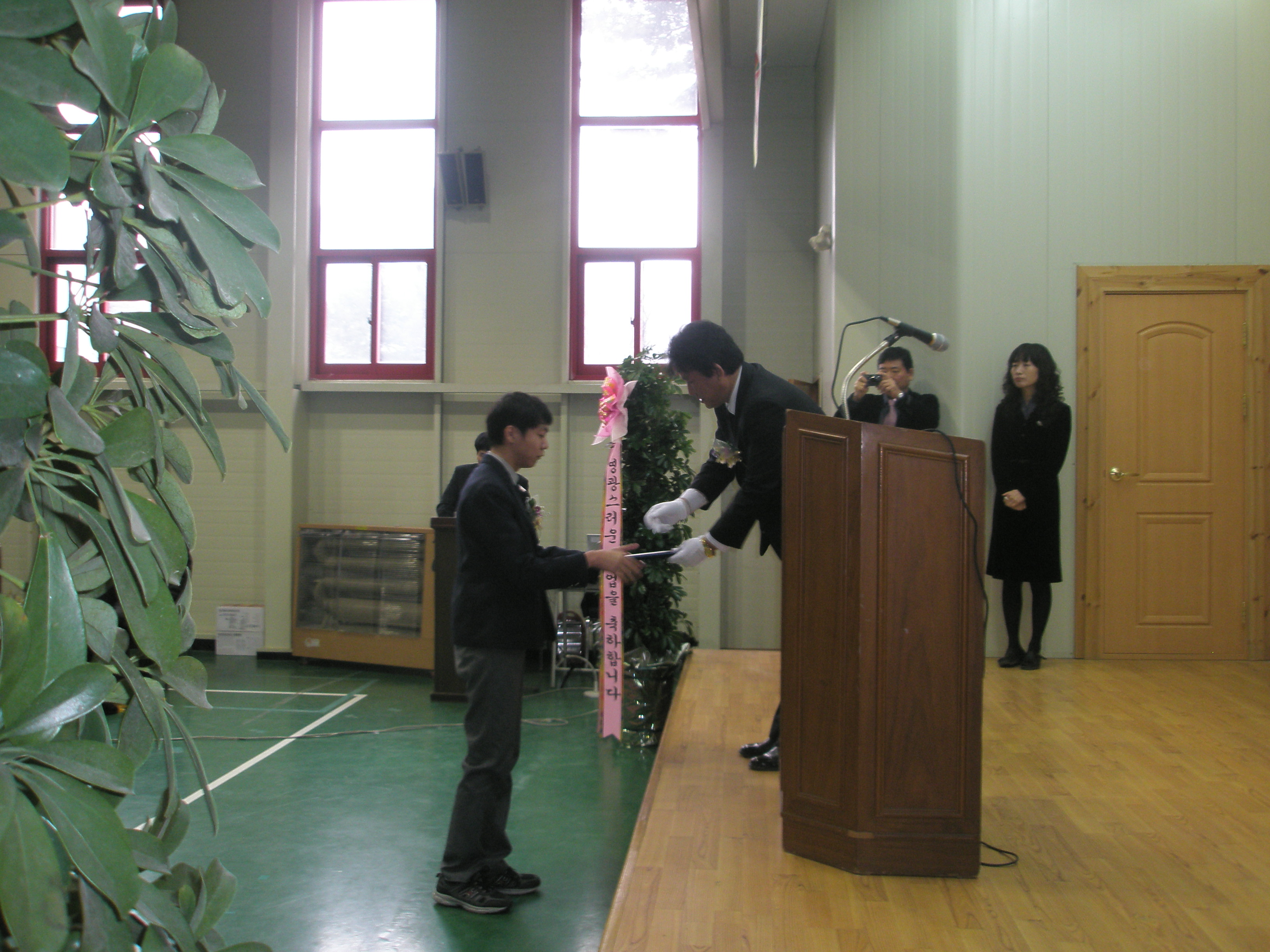 배출하는 황둔중학교 엄주형 학생에게 장학금(20만원)을 전달하였습니다.