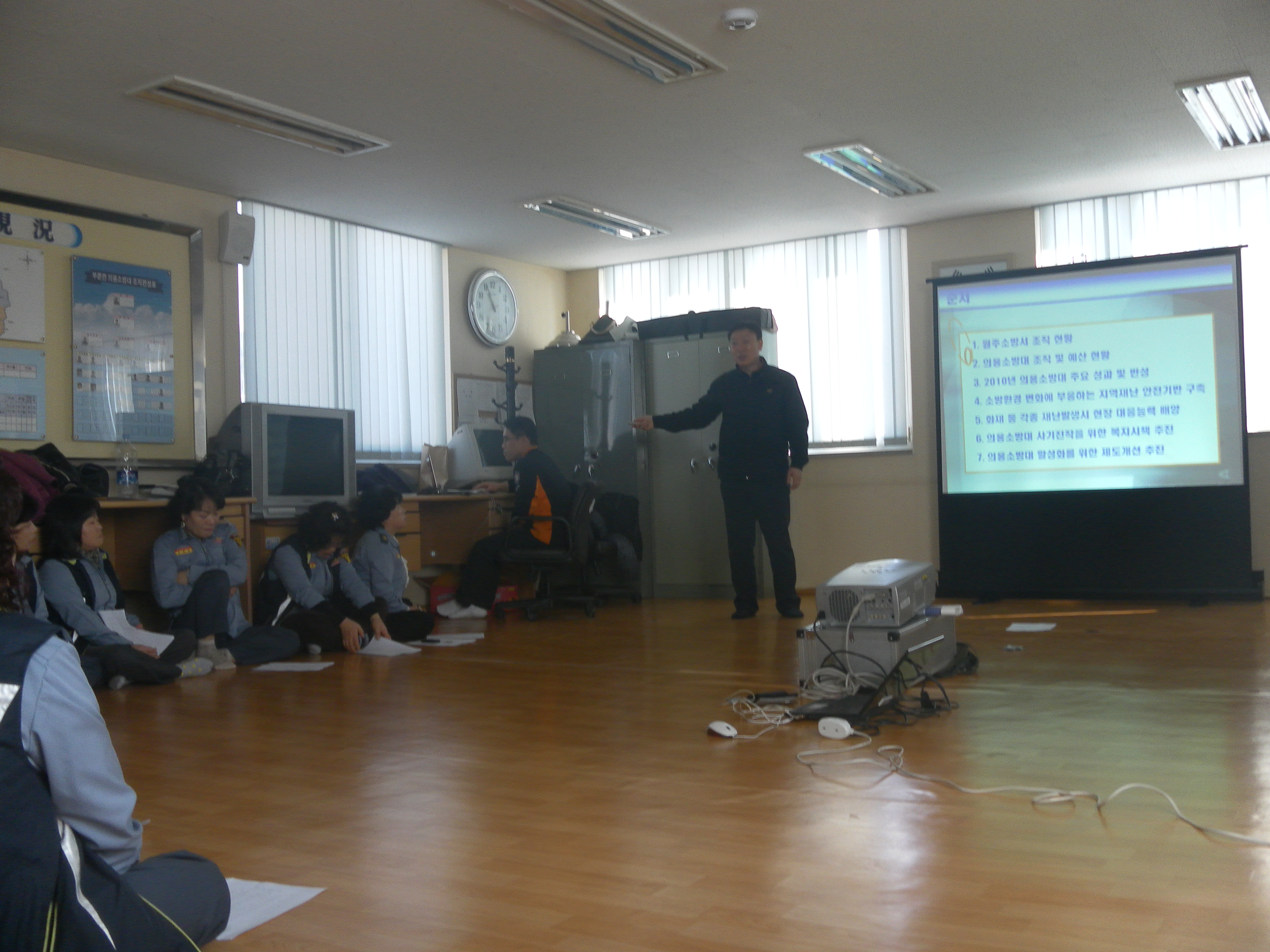 부론여성의용소방대는 금일(21일) 2011년 처음으로 정기교육을 실시했습니다. 김창현계장님과 문막센터장님께서 4시간동안 열성으로 교육을 해주셨습니다. 교육을 끝내고 법천리에 있는 섬강주변 잡풀을 소각하는 등 산불예방홍보도 병행 실시했습니다.