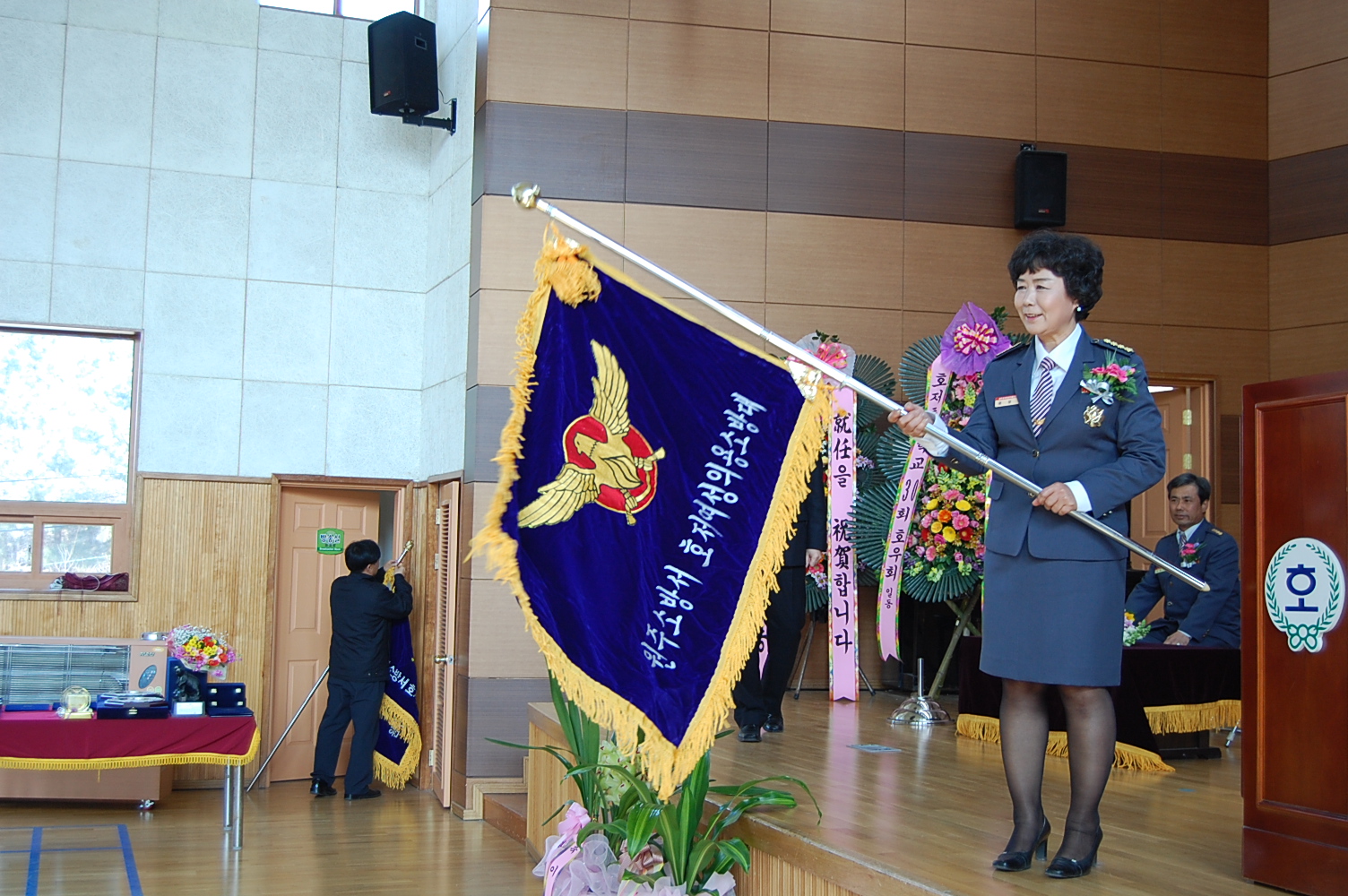 원주소방서(서장. 박창진)는 2011.02.25 (금) 10:30 - 호저초등학교 강당에서(호저면 소재)에서 제9대, 2대 호저남여의용소방대장 이취임식을 가졌습니다.