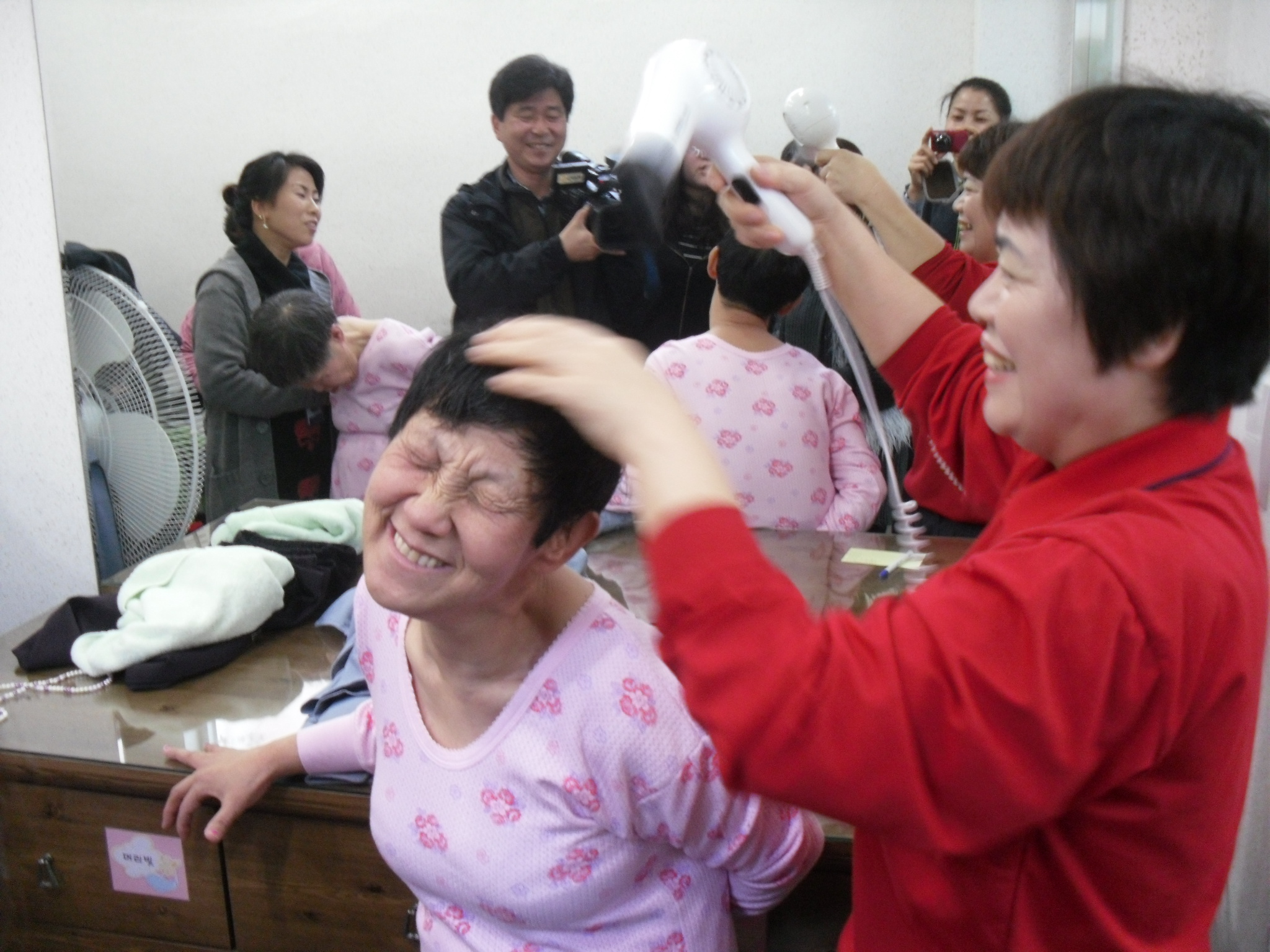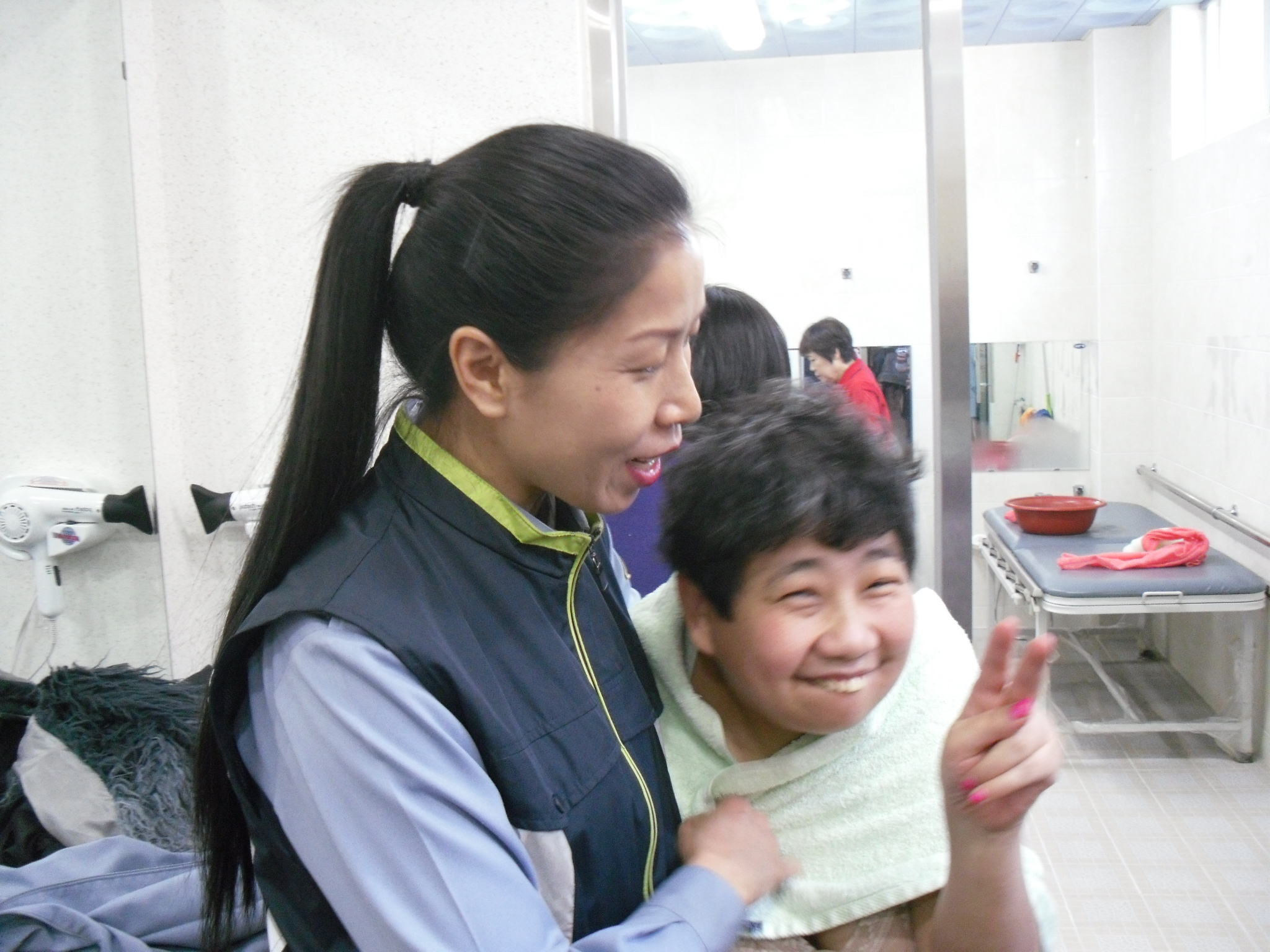 목욕을 거의 마쳤을 즈음 안나언니가 보이지 않는다는 것을 알고 선생님께 여쭤보니 얼마전에 수술을 받고 회복단계에 있다고 하셨습니다. 우리의 방문소식에 아무일 없다는 듯이 환한 미소의 얼굴로 인사를 건네는 언니를 보고 조금은 마음이 놓였습니다. 아주 심각한 상태는 아니어서 다행이었지만 안나언니가 빨리 완쾌되었으면 하는 바램입니다.