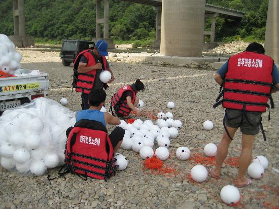 원주소방서(서장. 박창진) 원주의용소방대(대장. 조성일) 대원 40명은 6월30일 원주소방서대회의실에서 문막의용소방대,수난안전협회등 50명이 참가하여 2011년 여름철 119 시민 수상구조대 및 수난구조대를 발대했습니다. 발대식이 끝난후 119구조대원의 심폐소생술 교육과 7월1일부터 근무할 칠봉유원지와 간현관광지를 찾아가 부표설치 안전장비 정검등 을 실시했습니다.