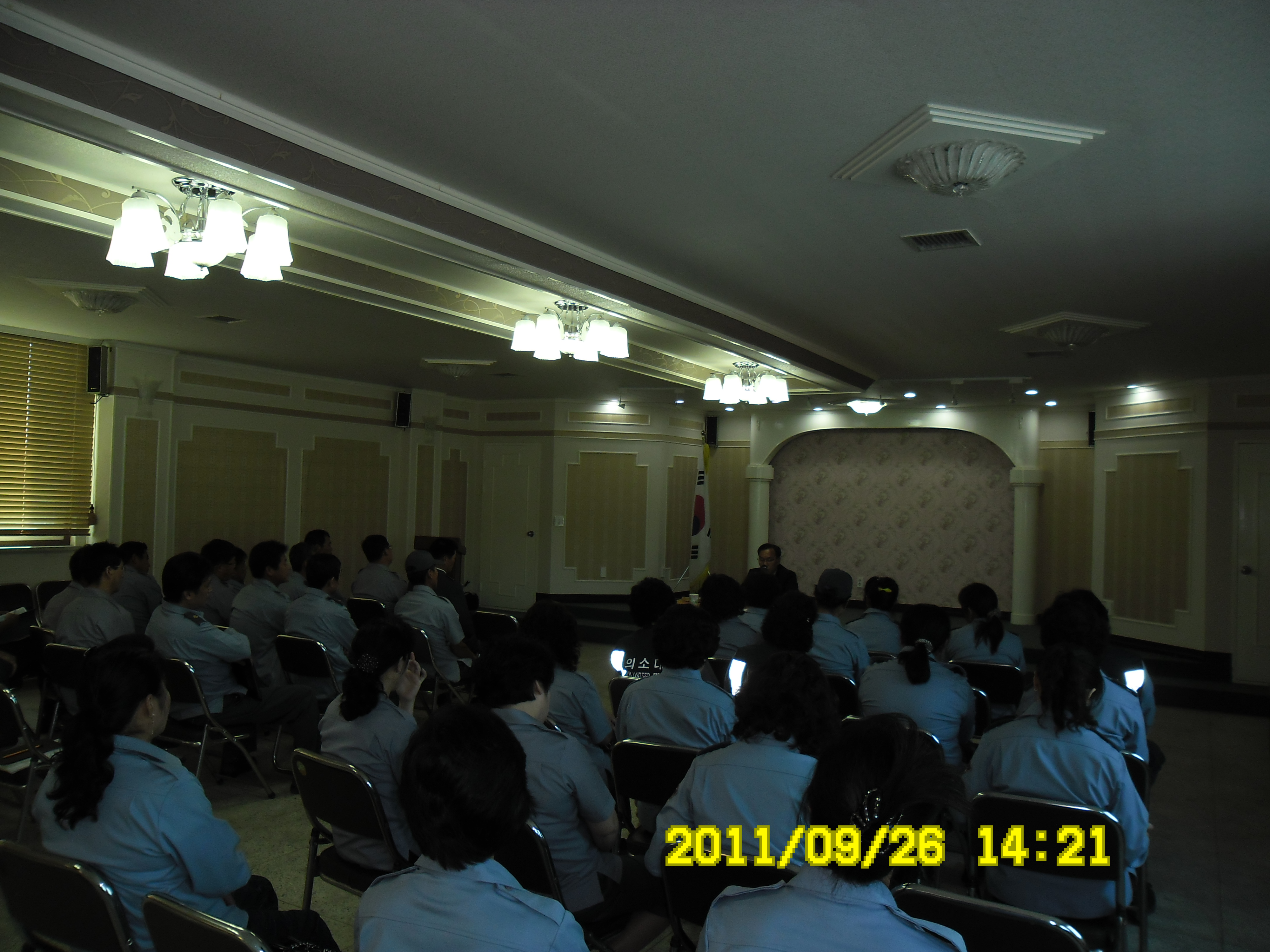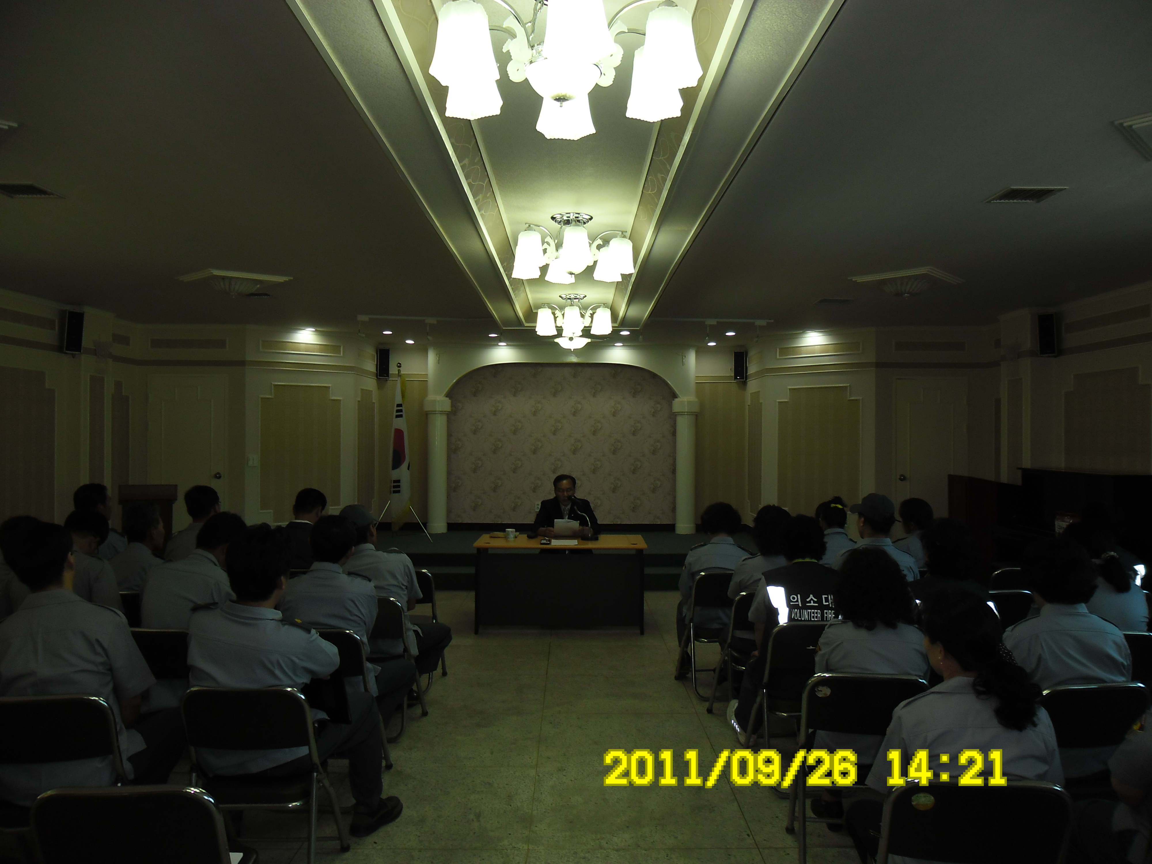 2011년 9월 26일 지정의용소방대(대장 한현수)외21명과 지정여자의소대(대장 박인수)외23명은 14:00~18:00까지 원주소방서 박창진서장님을 모시고 9월 정기교육을 실시하였습니다.