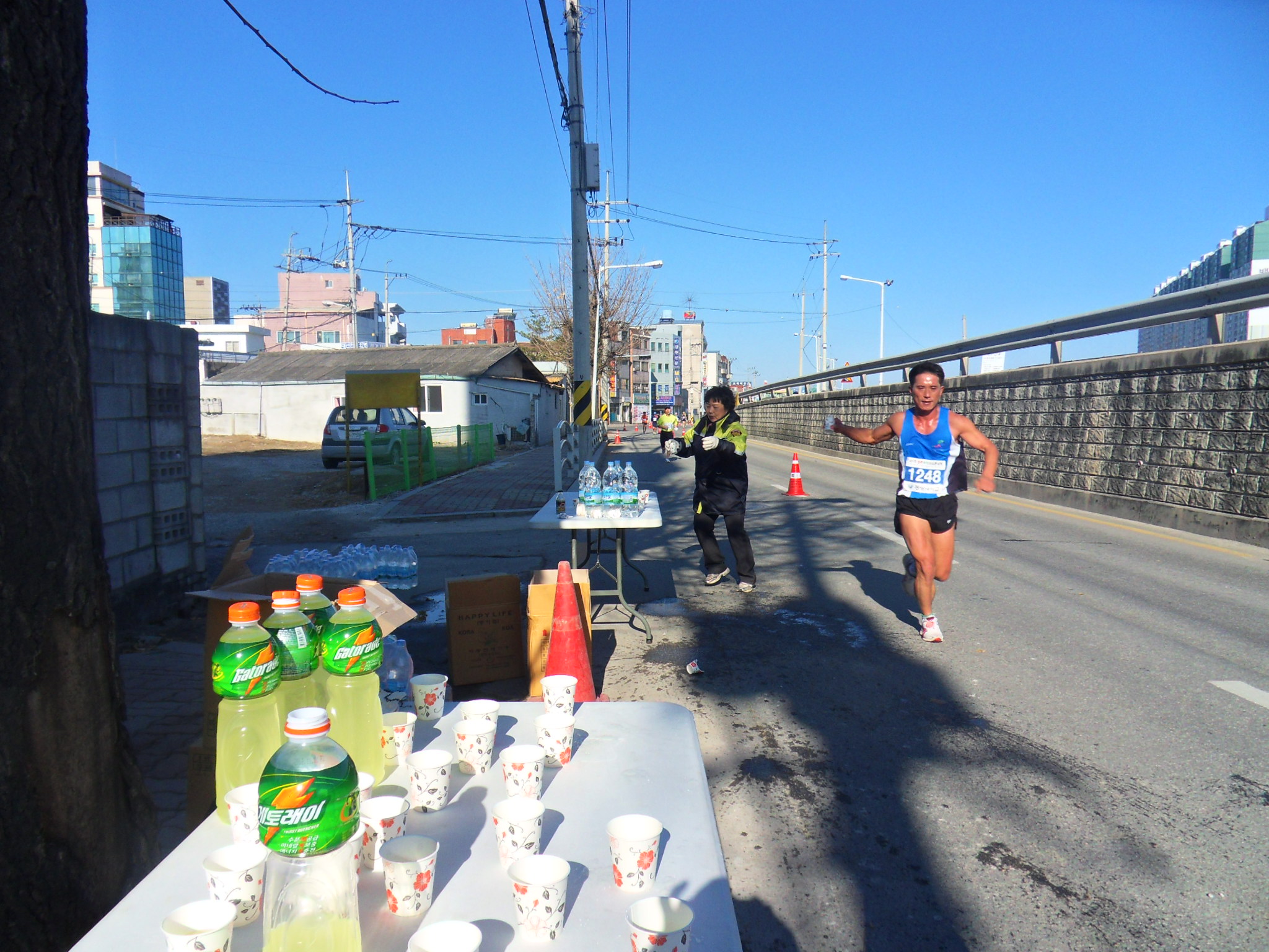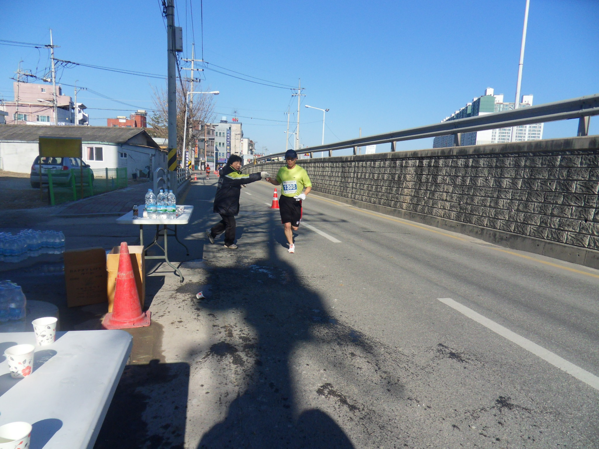 바람은 불어 종이컵 들은 이리 저리 나 딩굴고 춘운날 고생했지만 힘들게 뛰는 마라토너들에게 생수와 스포츠 음료를 나눠주는 마음에 나름 보람있었답니다