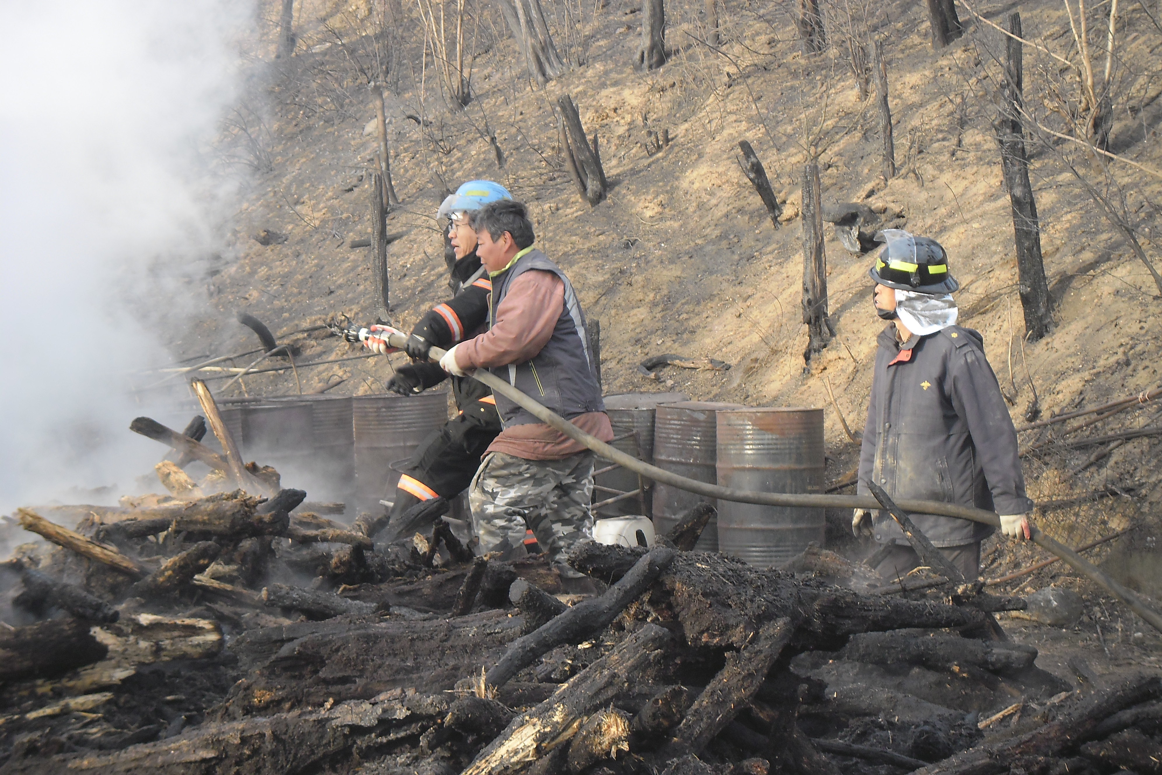 귀래의용방대 남22명 여20명 대원 전원이 화재현장에 투입하여 5시간 동안화재 진압 보조와 잔불 정리 끝 까지 마무리 하였다