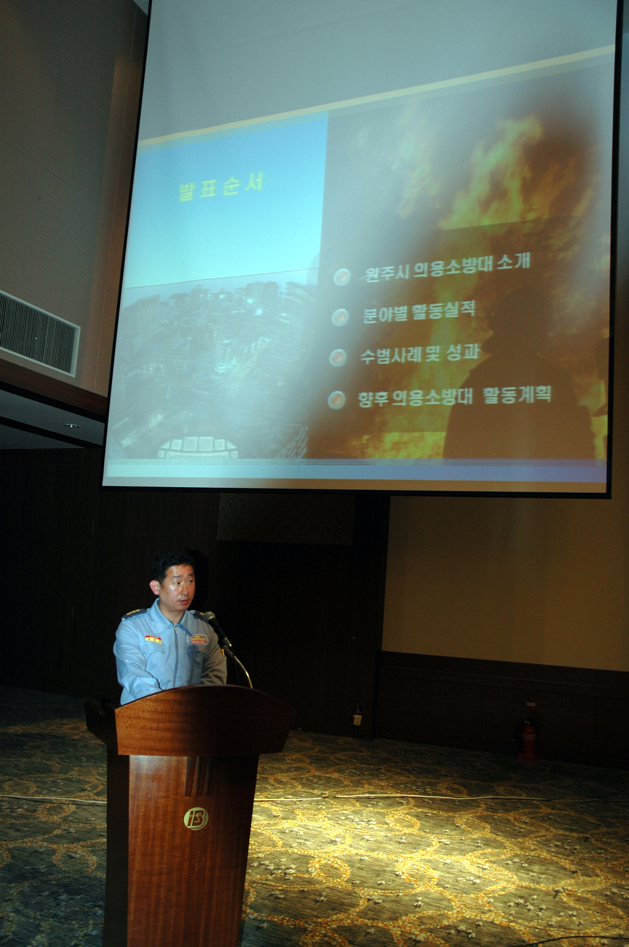 원주의용소방대(대장 조성일)는 2월22일 인터불고호텔에서 원주소방서,원주의용소방대 연합회주최한 원주시의용소방대 참봉사 전진대회에 38명이 참가하여 교통정리와 2011년 우수대 행사보고를 성광호부대장님께서 진행하였습니다