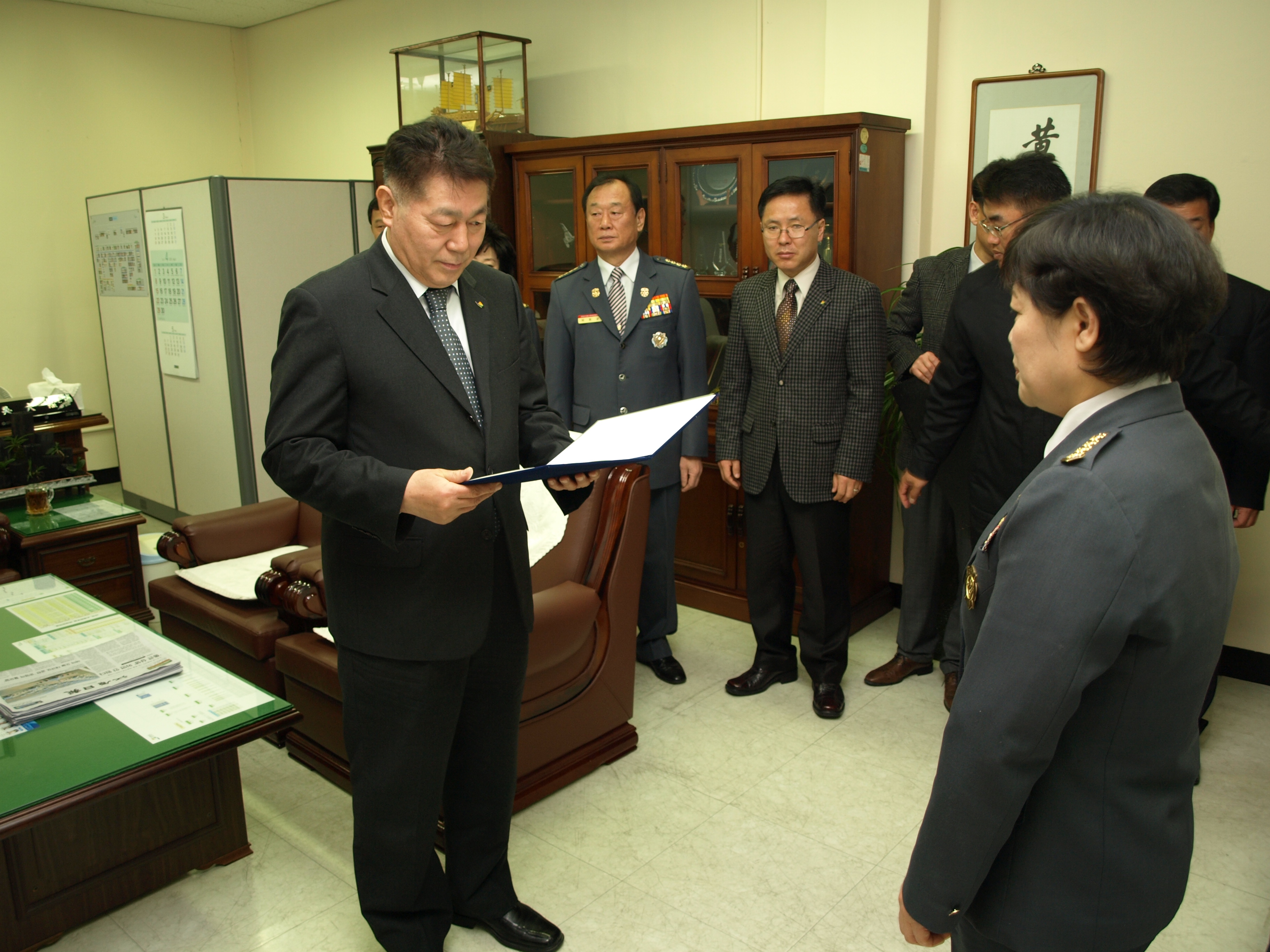 2012년 3월5일 11시30분 흥업여성대오오석대장은 소방본부 본부장님실에서 도여성의용소방대 연합회장 임명장 위촉식이 있었습니다.위촉식은 도지사님 일정관계로 오대희본부장님께서 전달 하셨습니다.