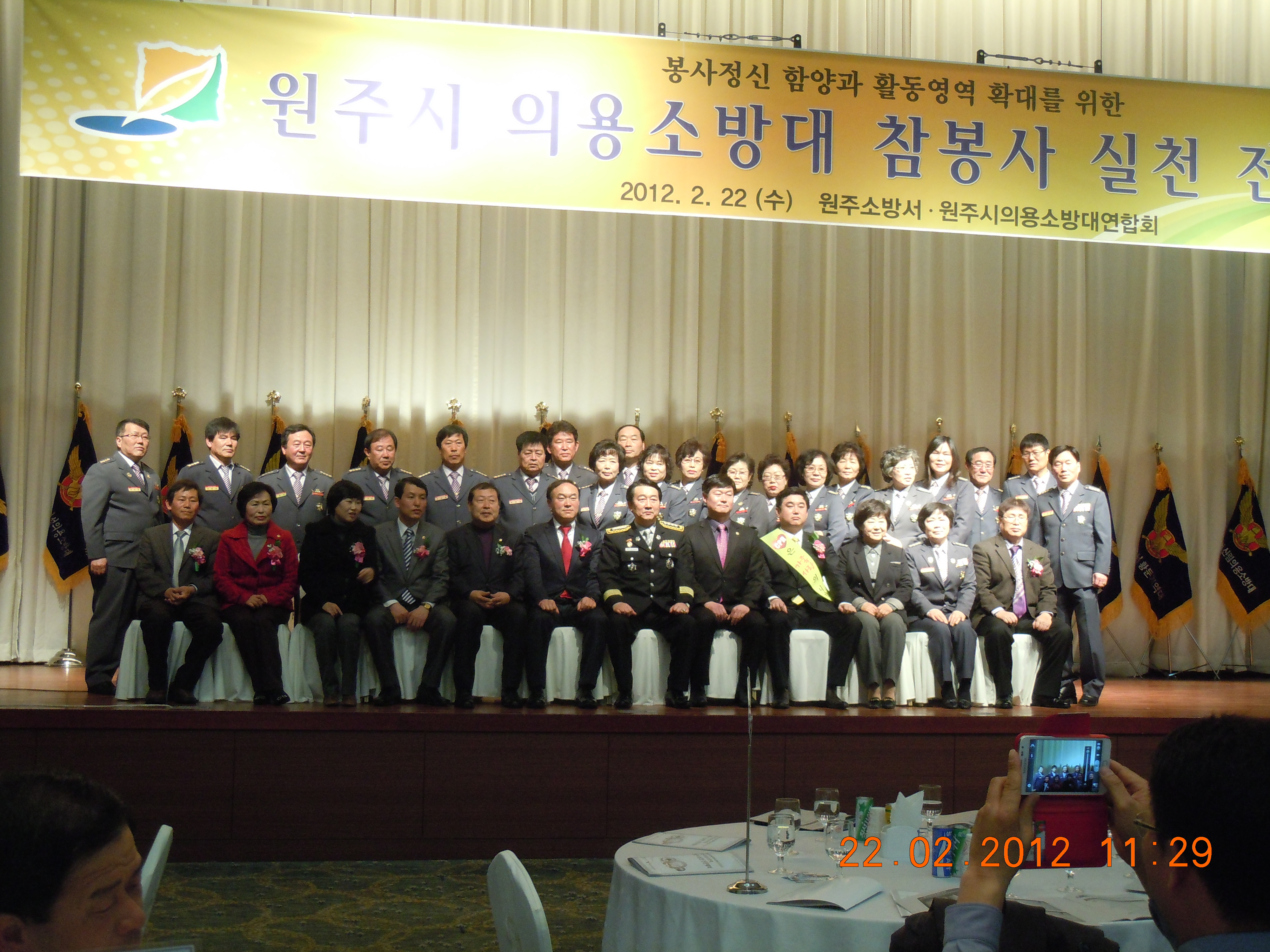 김시균서장님과 원주시의용소방대연합회가 주관하고 원창묵 시장님과 도의원, 시의원등 내빈들과 의용소방대 대원 500여명의 참석하였다.