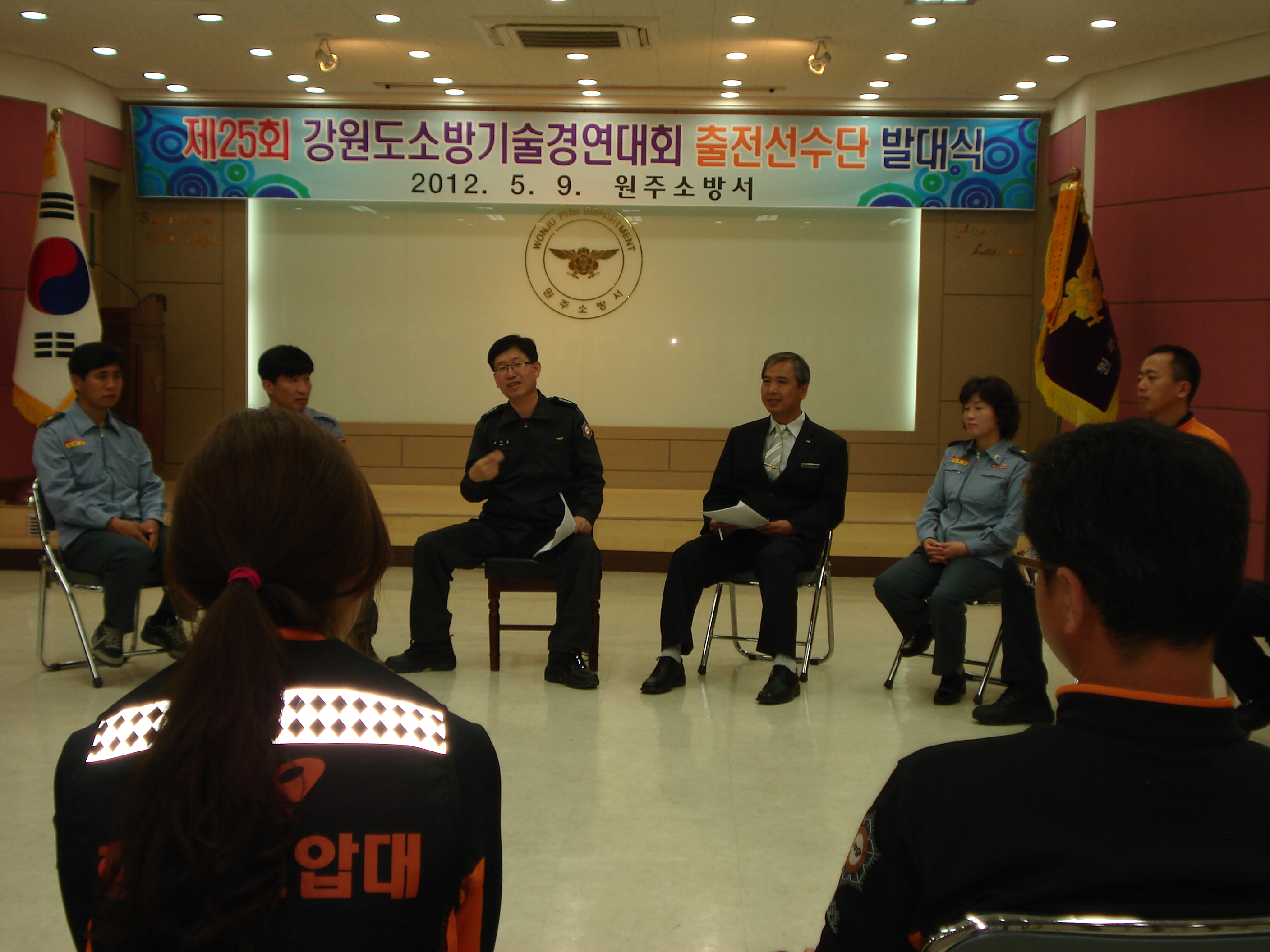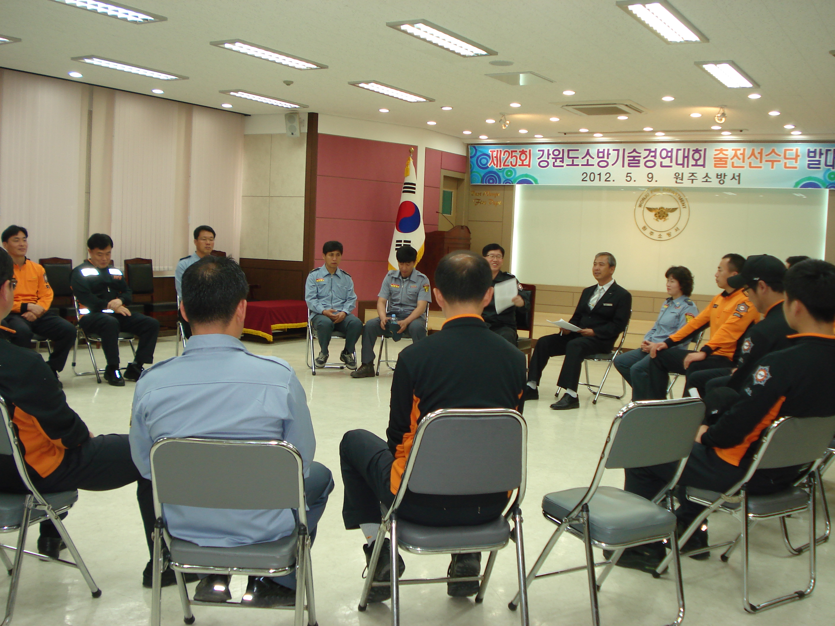 2012년 5월9일 원주소방서(서장 김시균) 대회의실에서 제25회 강원도 소방기술경연대회 출전선수단 발대식을 하였습니다.