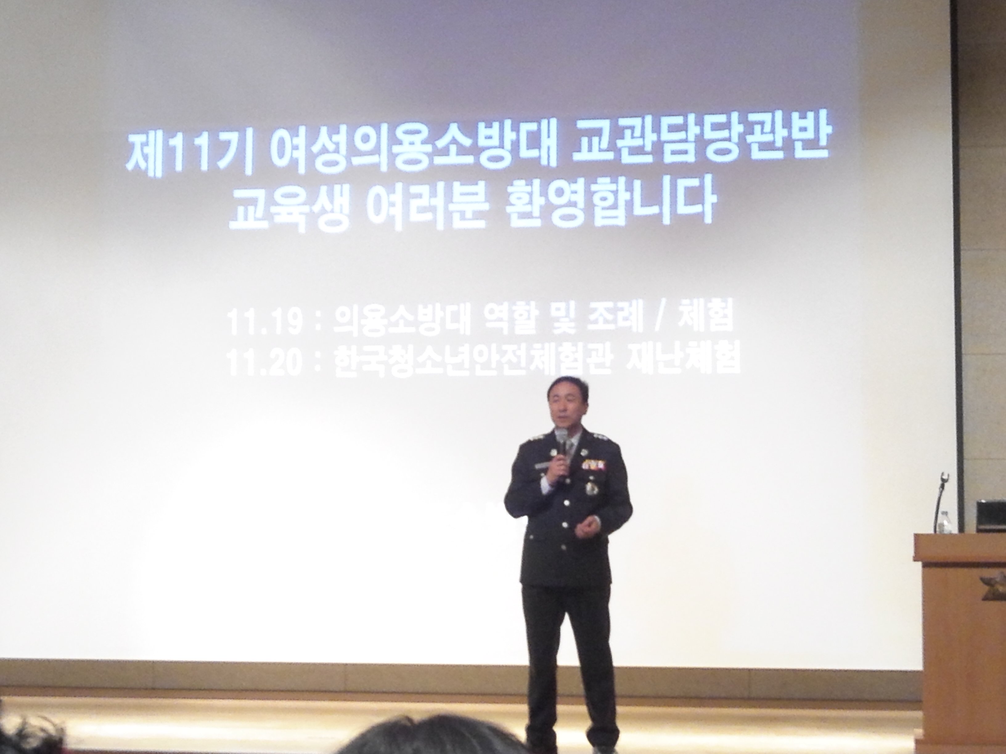 19일은 정병도 소방학교장님의 인사말씀을 시작으로 이론교육이 진행되었습니다.(1교시: 의용소방대 조례 및 교관의역할 -권봉중교수-, 2교시: 소방시설활용 -이윤열교수-, 3교시: 화재의 발생원 및 진화법 -이하규팀장-, 4교시: 불확실한 상황인식과 이상심리 - 권학주팀장-) 위트(wit)와 더불어 꼭 알아두어야 할 내용만 뽑아 쉽고 빠르게 진행해주신 덕분에 이해가 쉬웠습니다.