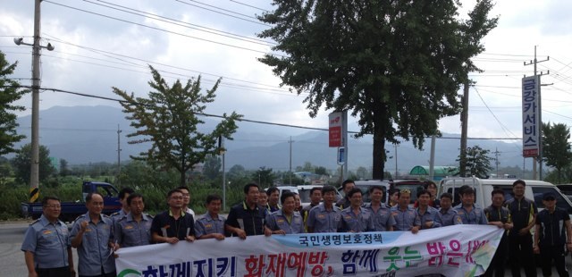 [함께지킨 화재예방 , 함께 웃는 밝은세상] 이란 현수막을 들고 멋진 원주위소대의 늠름한