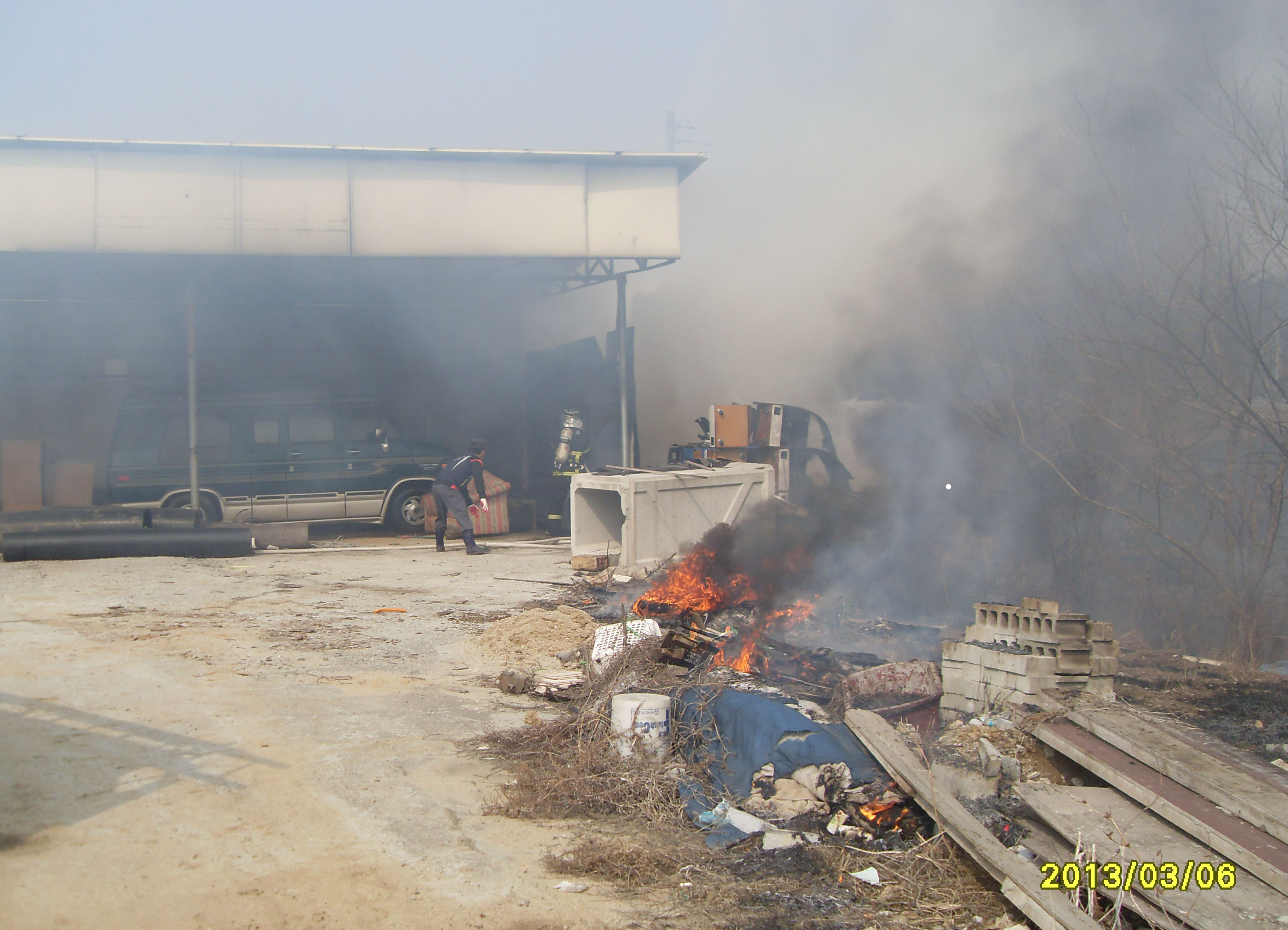 또한 원주시 가현동과 호저면 주산2리 경계지역에서 오후에 논두렁을 소각하던 중 건설자재 보관 창고로 불이 옮겨 붙어 화재가 발생 하였습니다,