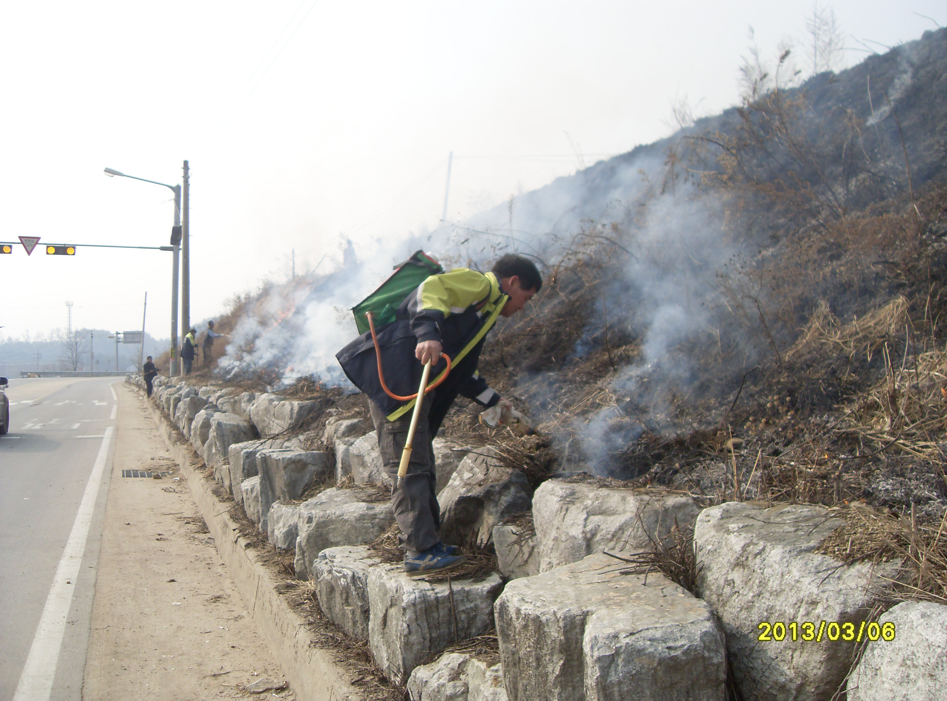 바람이 적은 오전에 소각 작업을 진행하고 잔불정리까지 마쳤습니다,