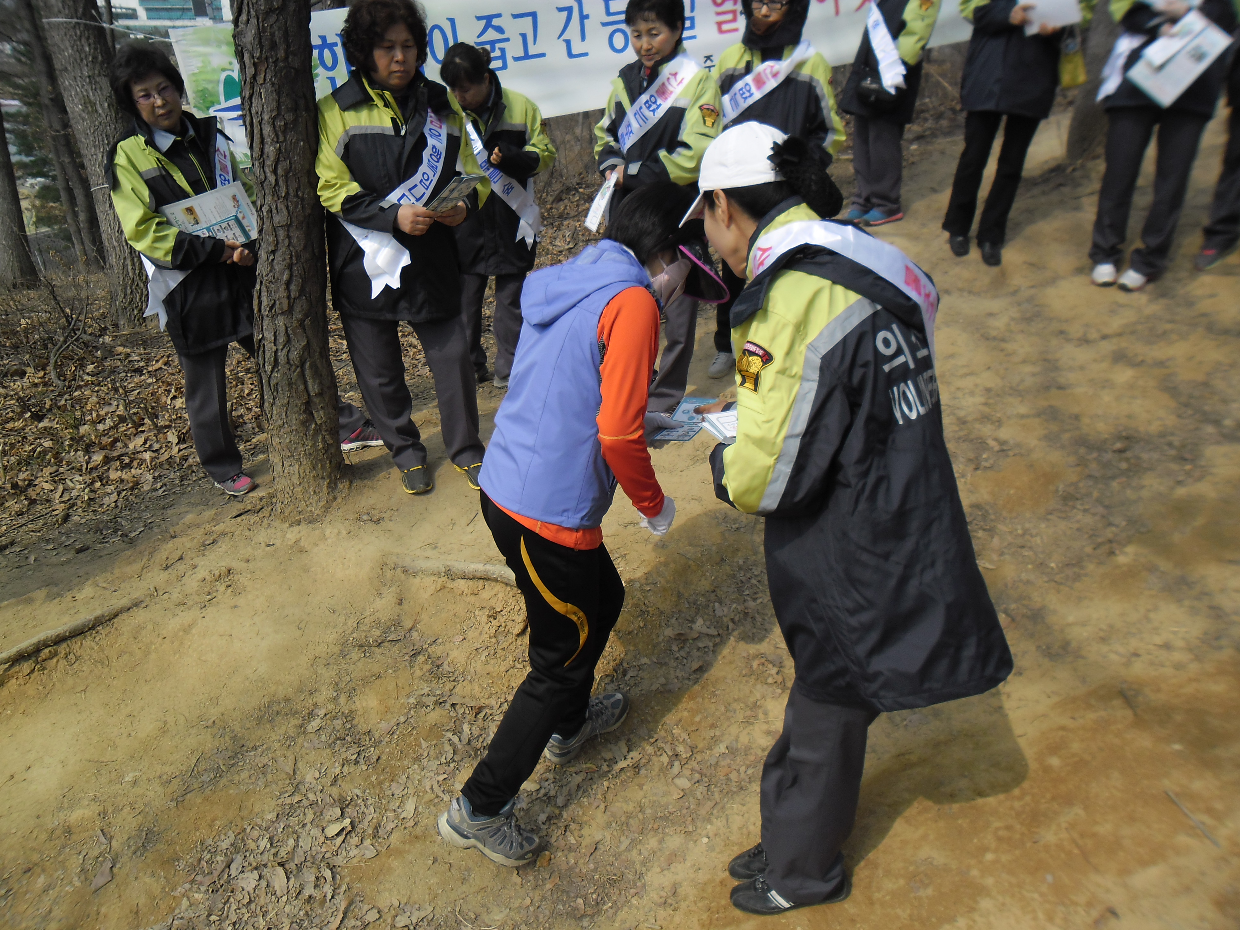 전단지 배포활동과 산불을 일으키지 않는 주의사항을 등산하시는 시민들께 알려드림으로