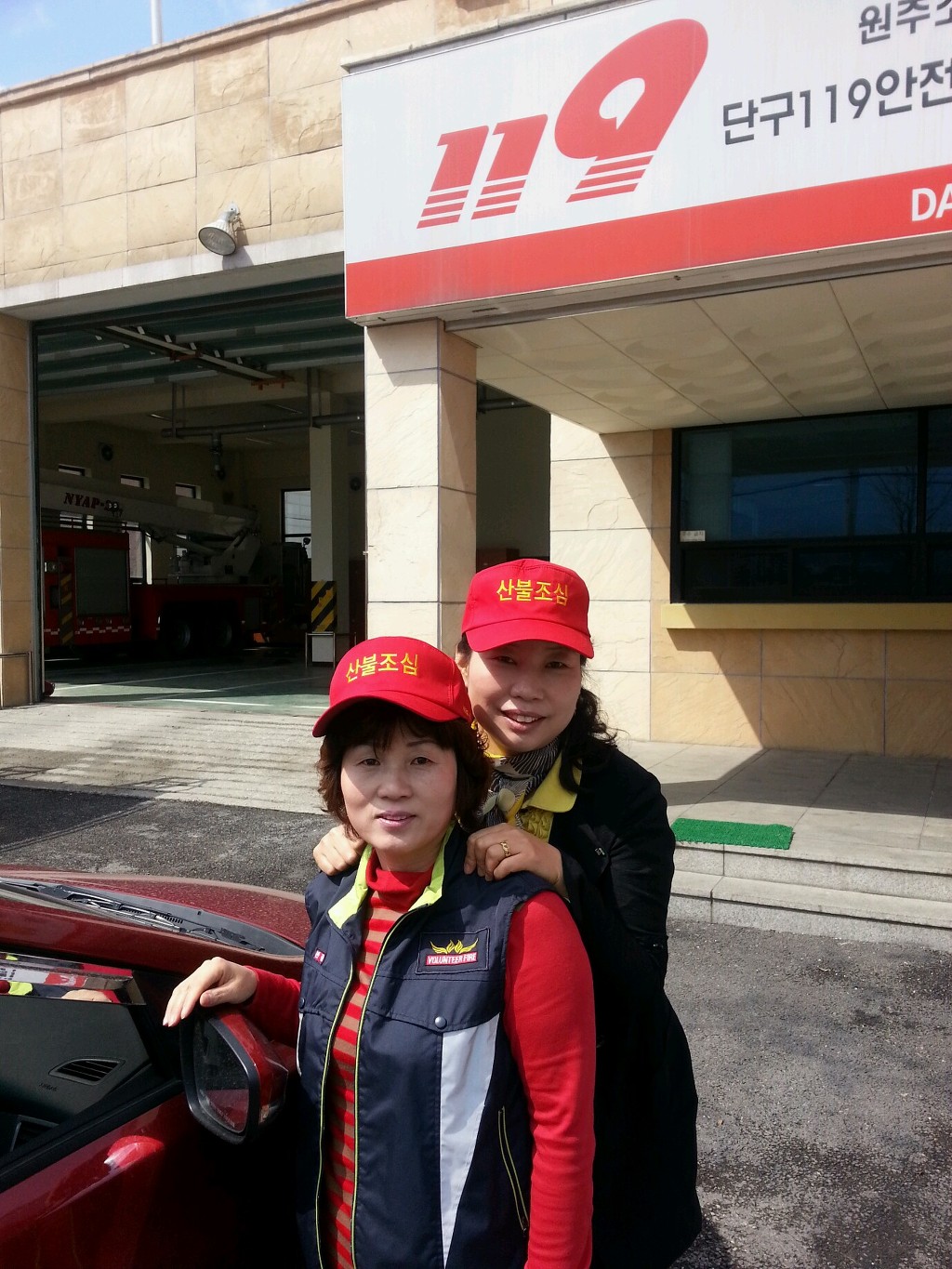 4월10일 보급반(김분옥.권옥희)이 산불조심 캠페인 돌았습니다 춥고 바람부는 날씨에 수고하셨습니다