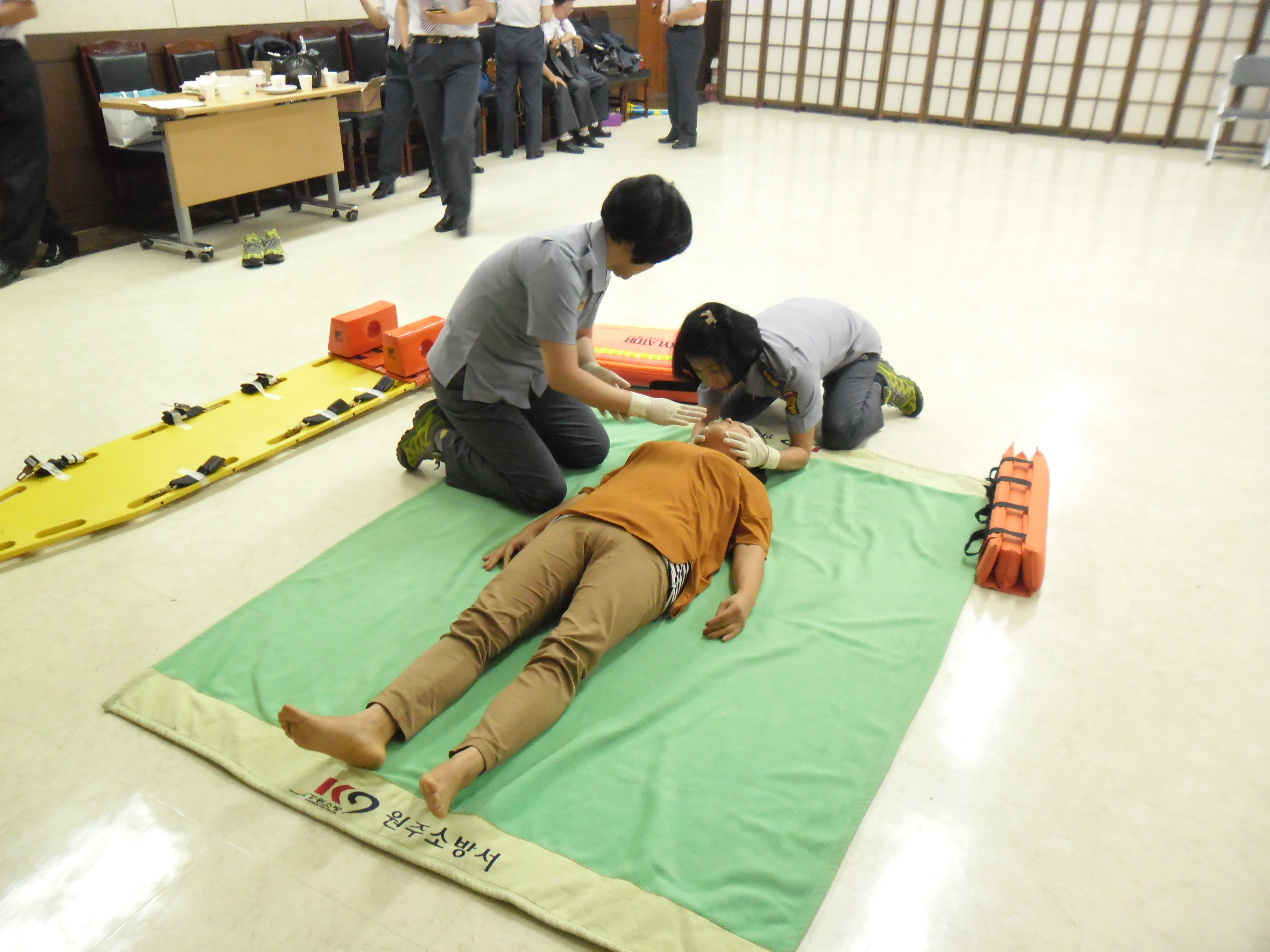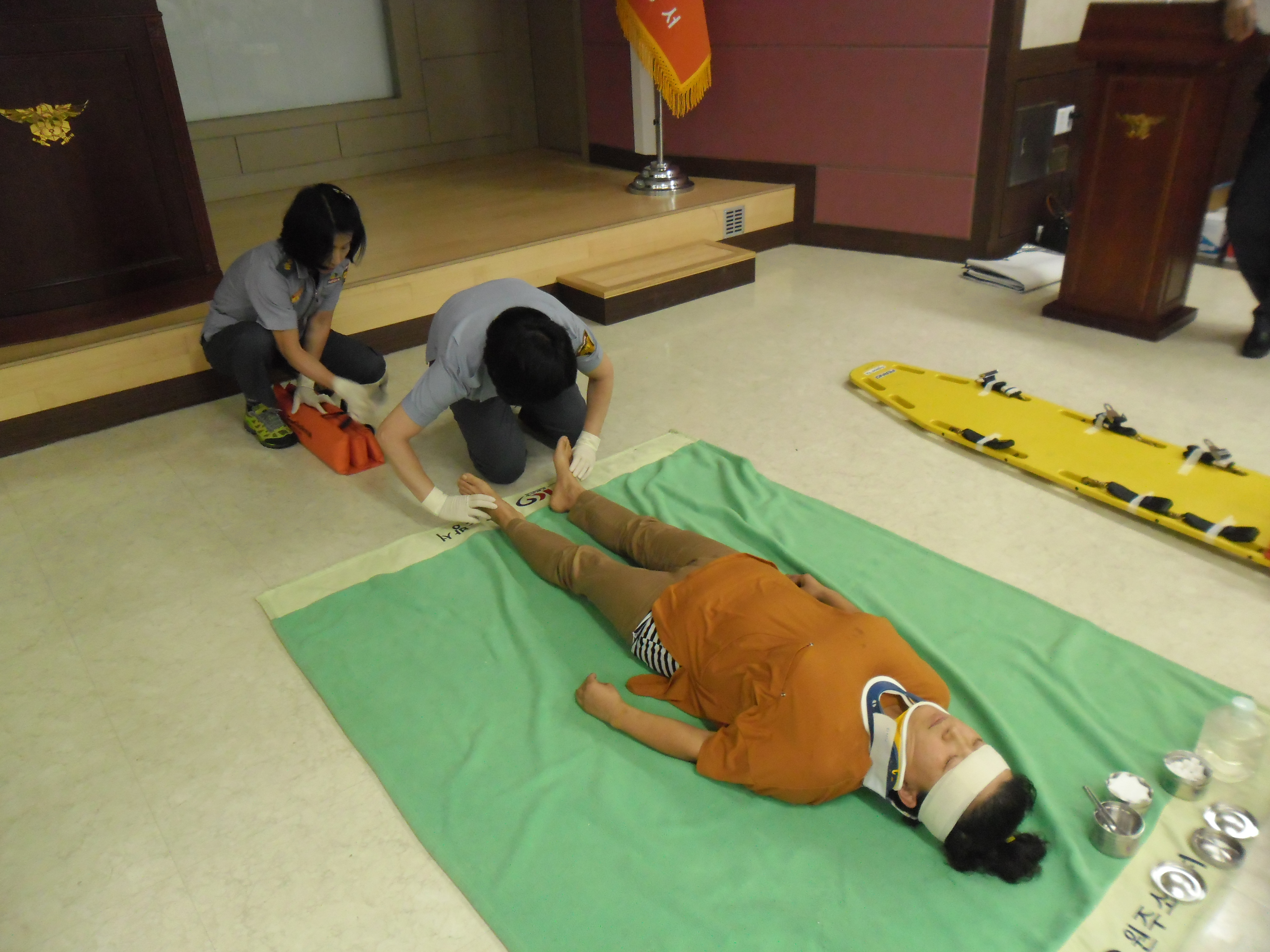 2013년 09월 25일 소방기술경연대회를 위하여 원주시대표 (흥업여성대) 외상환자 부목고정 응급처치를