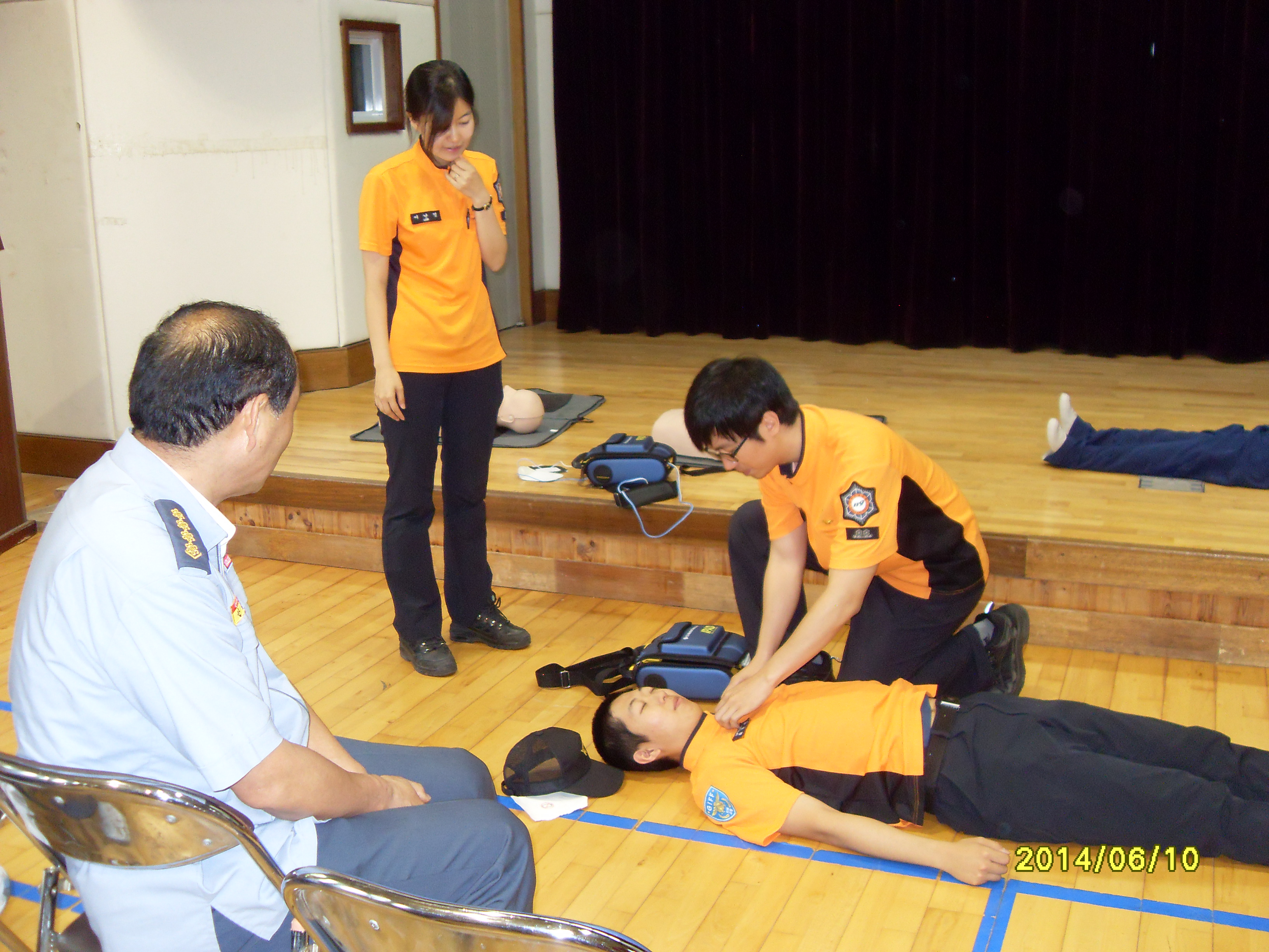 2014년6월10일 호저 의용소방대는 호저중학교 학생들과 함께 심폐소생술 교육 및 실습을 하였습니다,