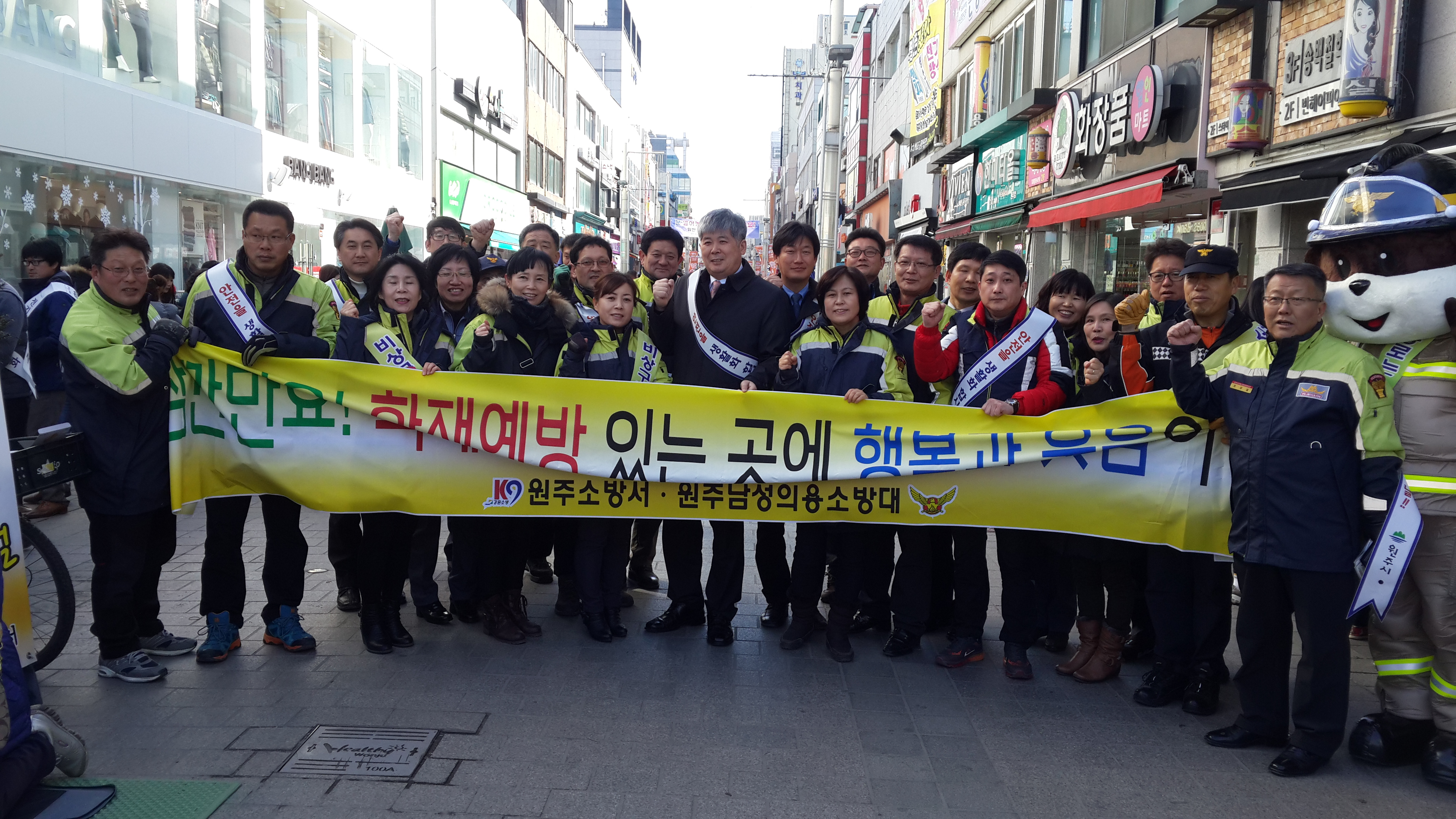 원주남성의소대(대장조성일)는 2월13일 오후2시 중앙시장 문화의거리에서 대장님외 대원 20명이 참가하여 설날 안전켐페인을 실시했습니다.