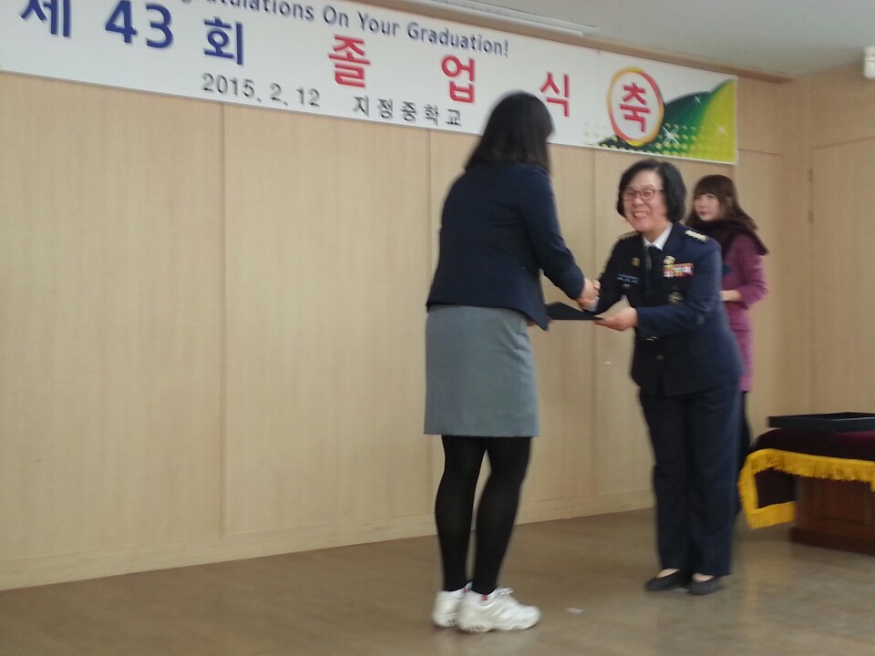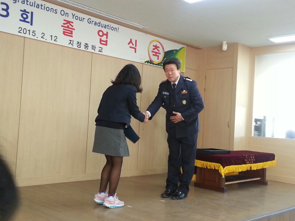 2015년2월12,13일오전10시에 지정여의소대 박인수대장님과 지정의소대 이완승대장님께서 지정초등학교와지정중학교에 장학금을 전달하였습니다.