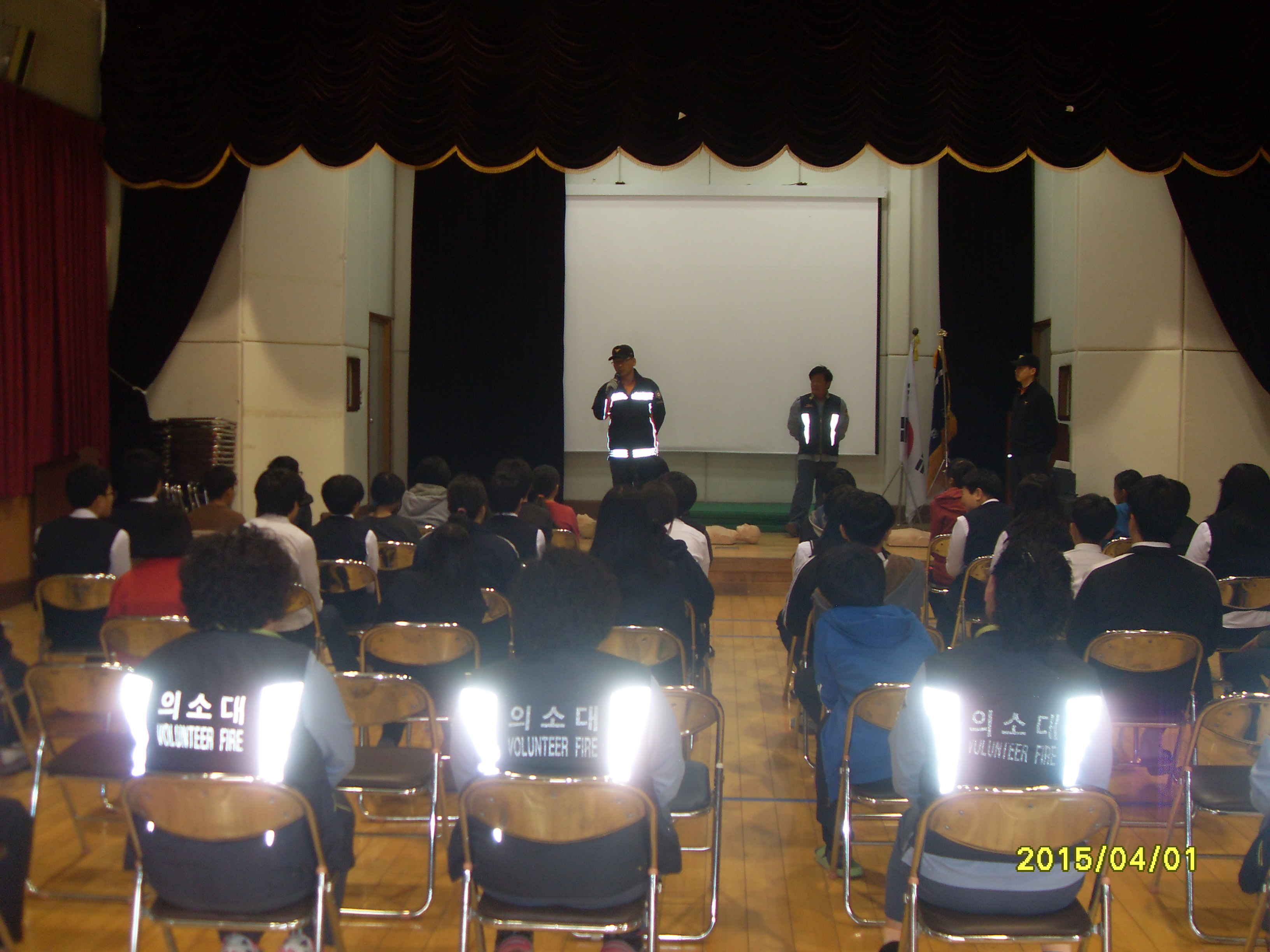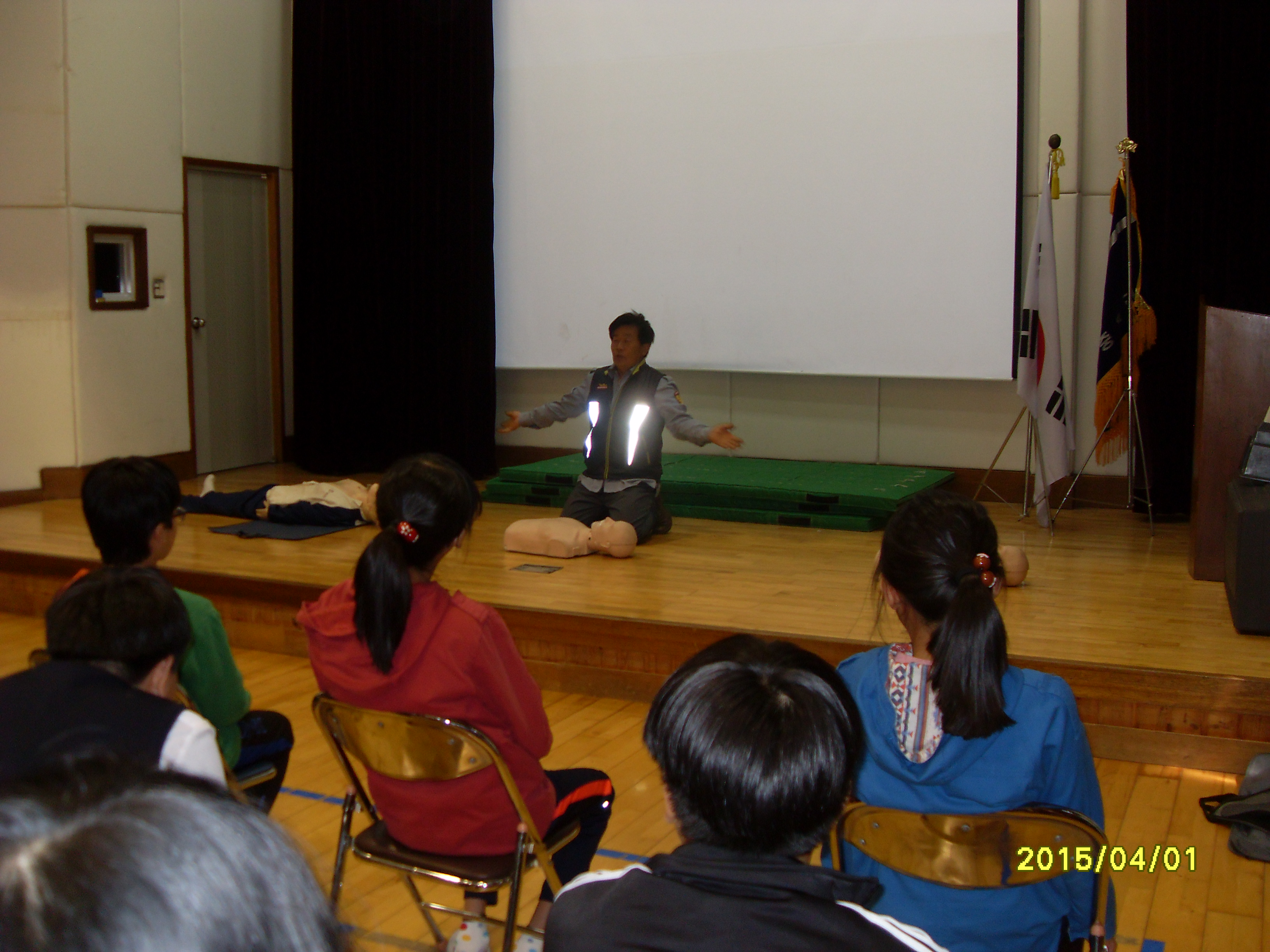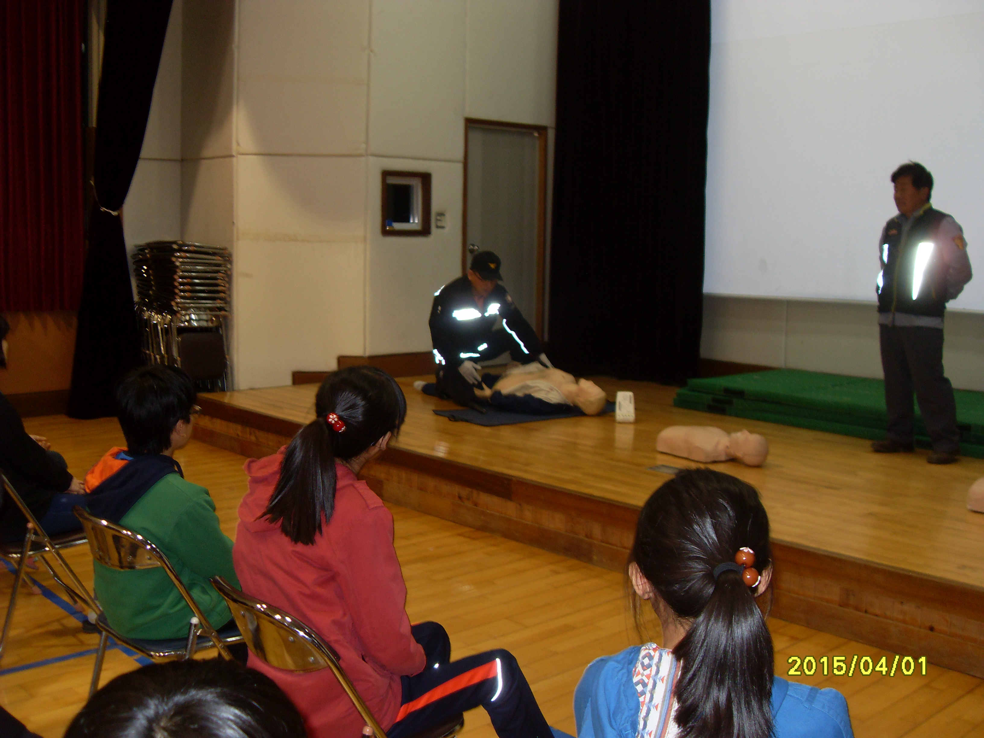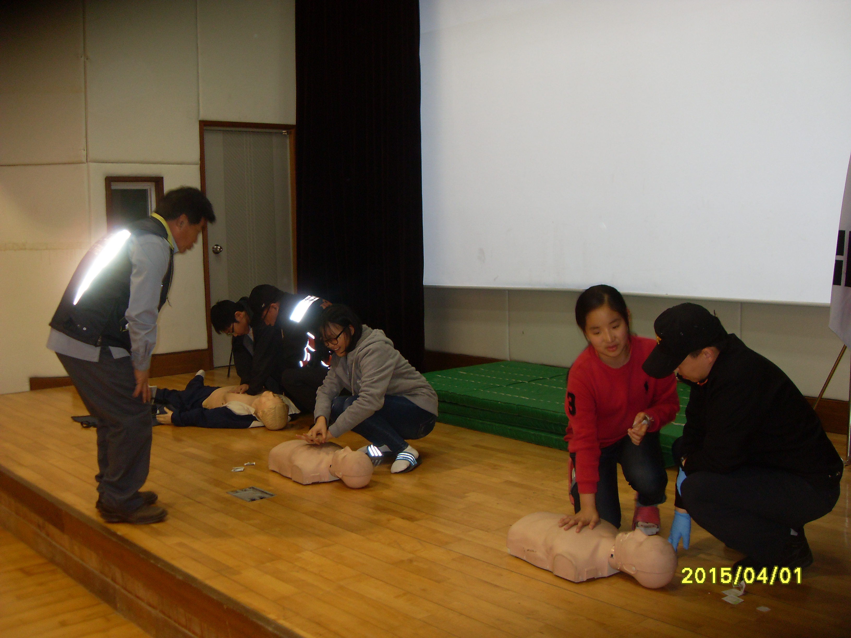 이번교육은 호저중학교 체육관에서 학생들과 심폐소생술 실습을 진행 하였습니다.