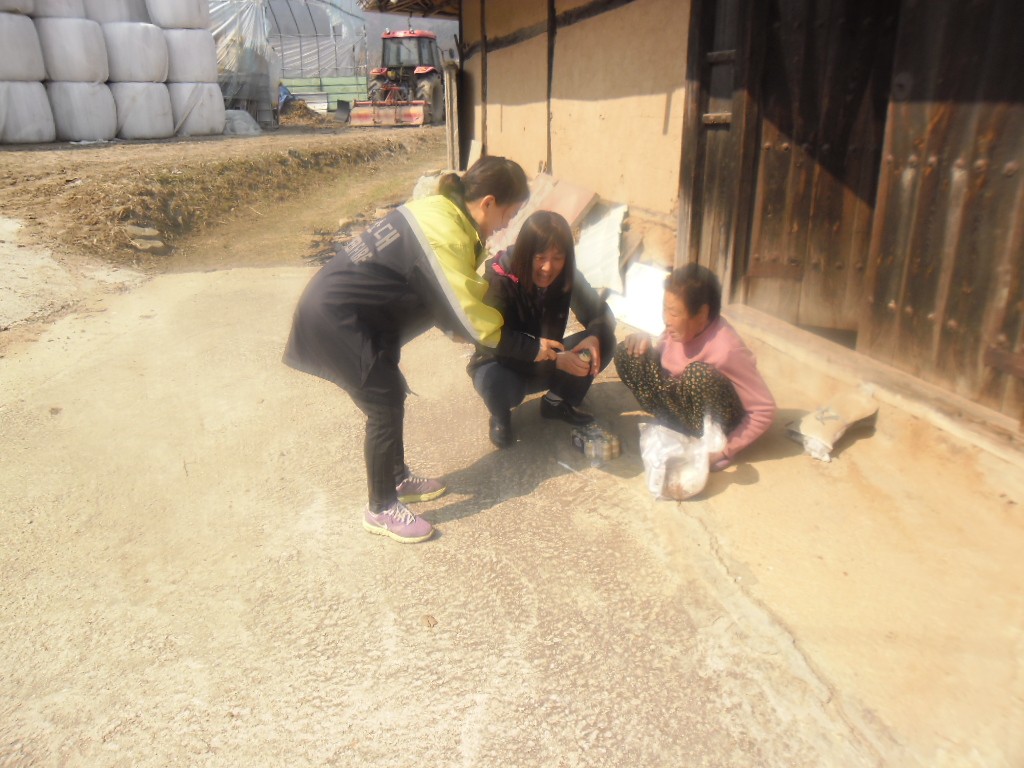 흥업면 대안리 에 있는 독거노인에게 반찬을 만들어 나누어 드림