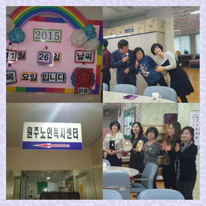 2015년 11월26일 목요일 3시부터 4시까지 권옥희부장님과 보급반 안병화반장님 안금향 김용자 양삼례대원 이순자대원 항상 건강한 웃음과 경쾌한노래로 봉사하고 오셨습니다^^~~