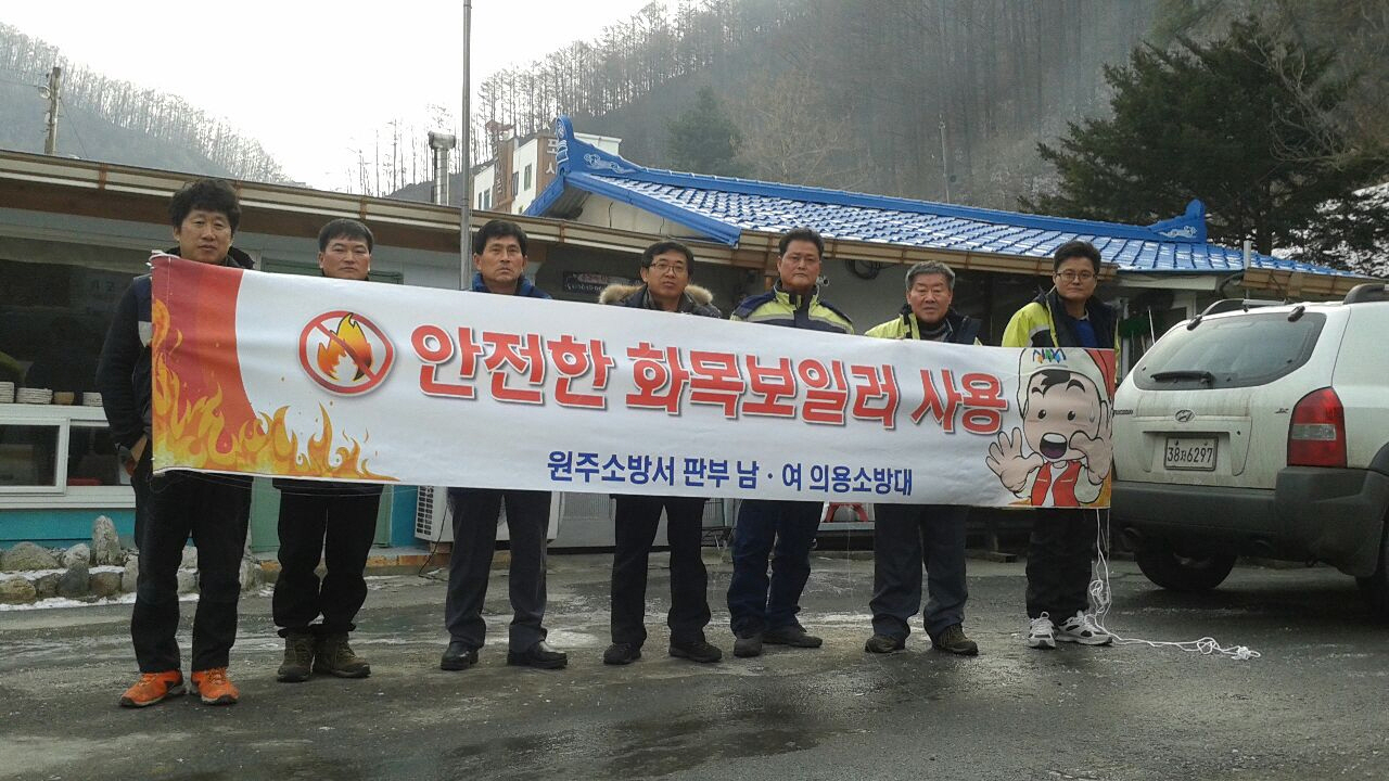 판부남성의용소방대(대장 직무대리 박수열) 에서는 01월 정기교육 및 안전한 화목보일러 사용 캠페인을