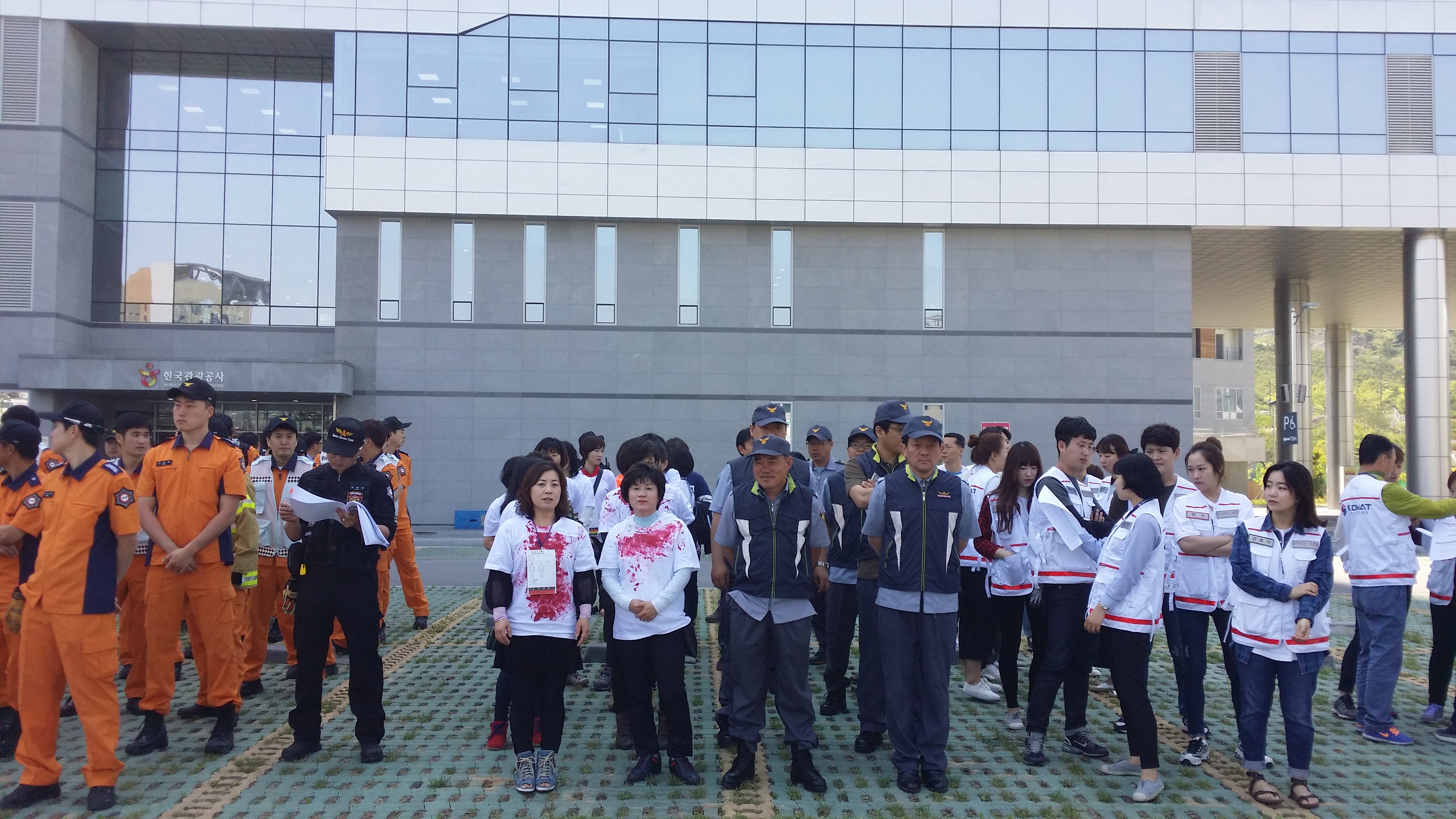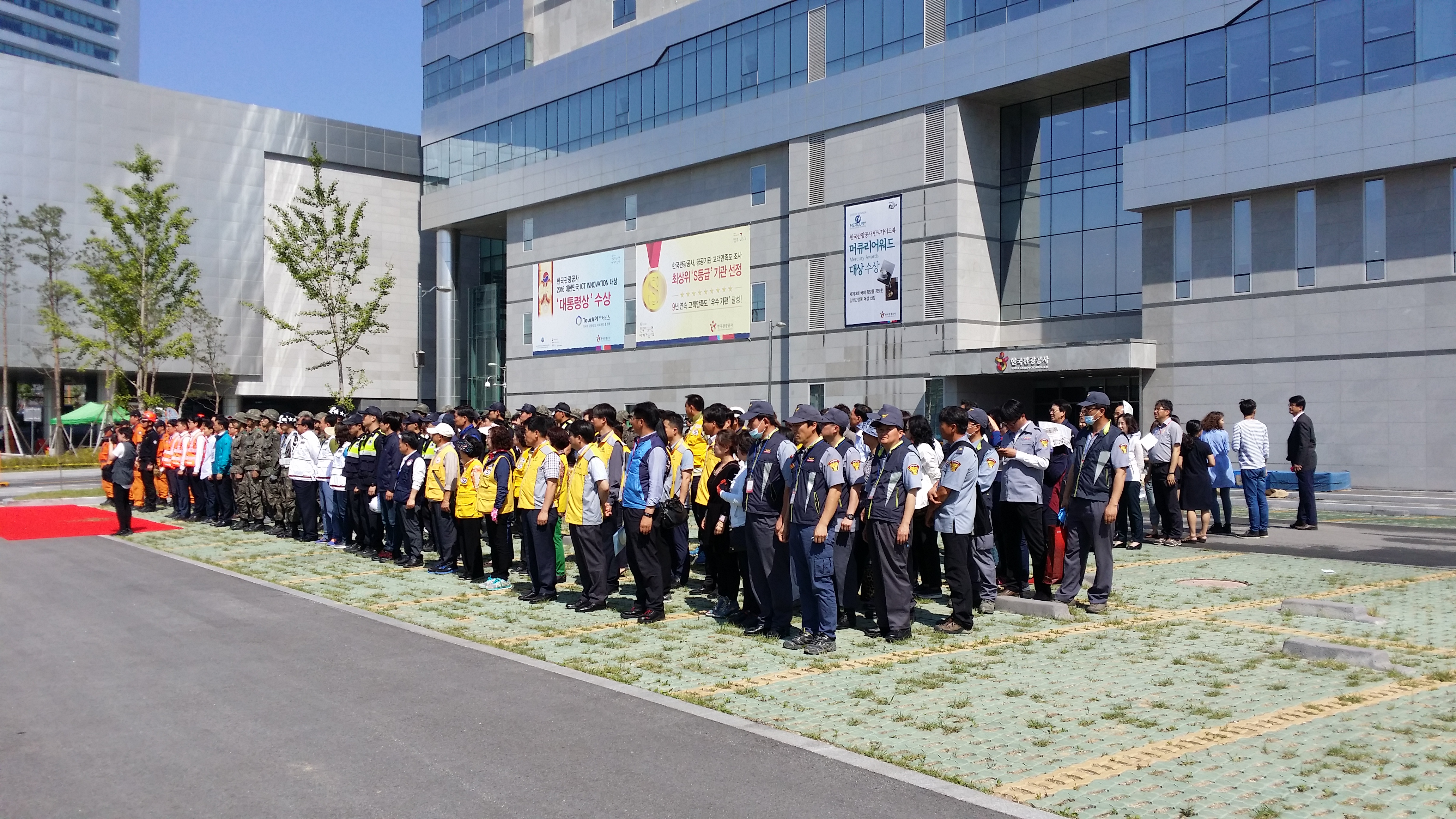 혁신도시내 관광공사 정문에서 민.관,군 합동의 화재발생시 대처요령및 진압에 대한 훈련을 실시 하였습니다.