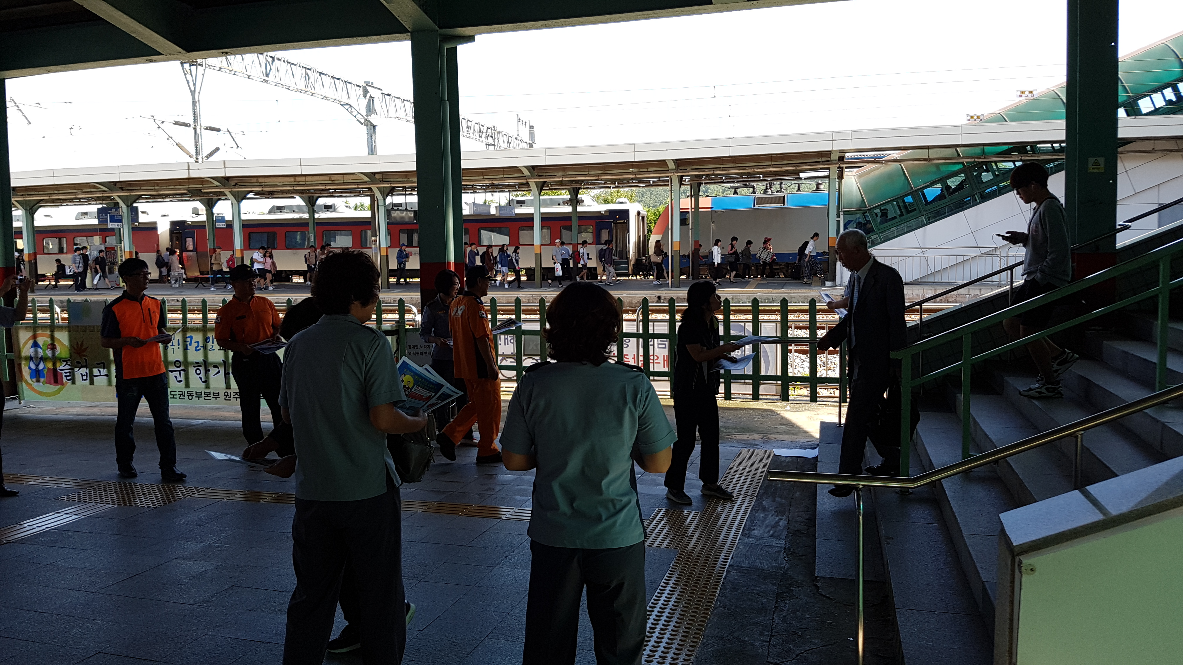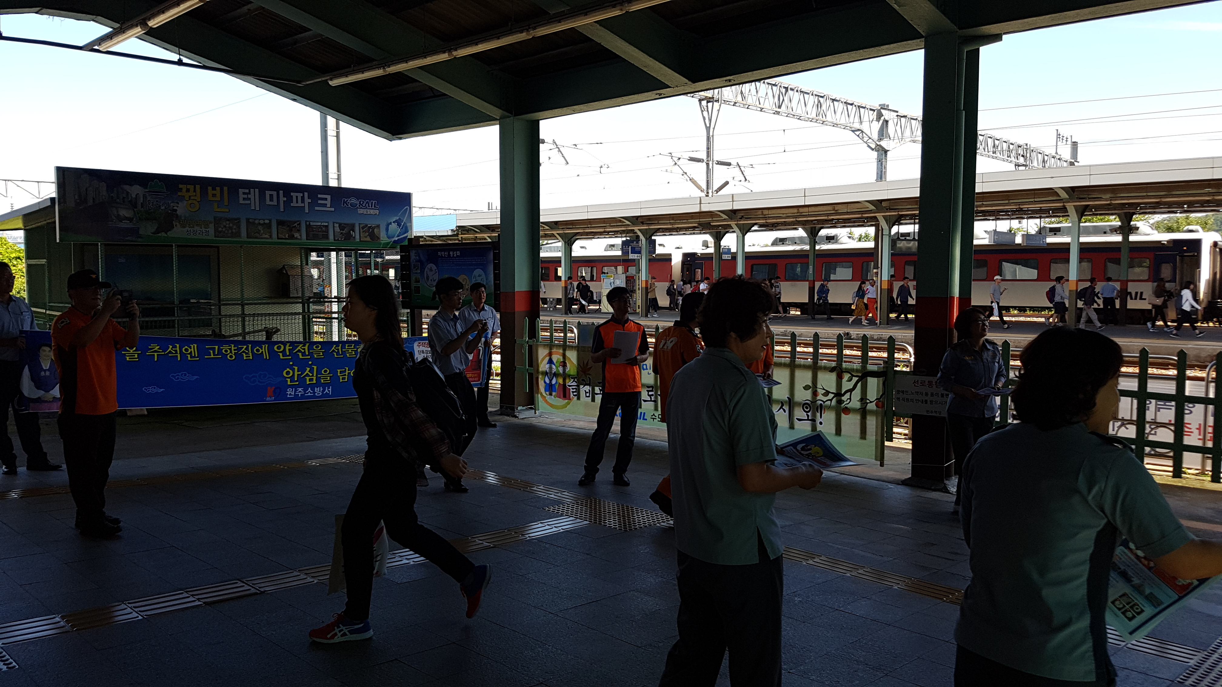 원주역 내에서 추석 귀성객분들에게