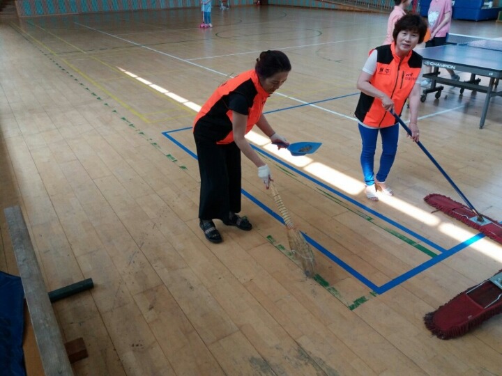 내용: 체육관 실내 바닥청소 및 입구먼지제거