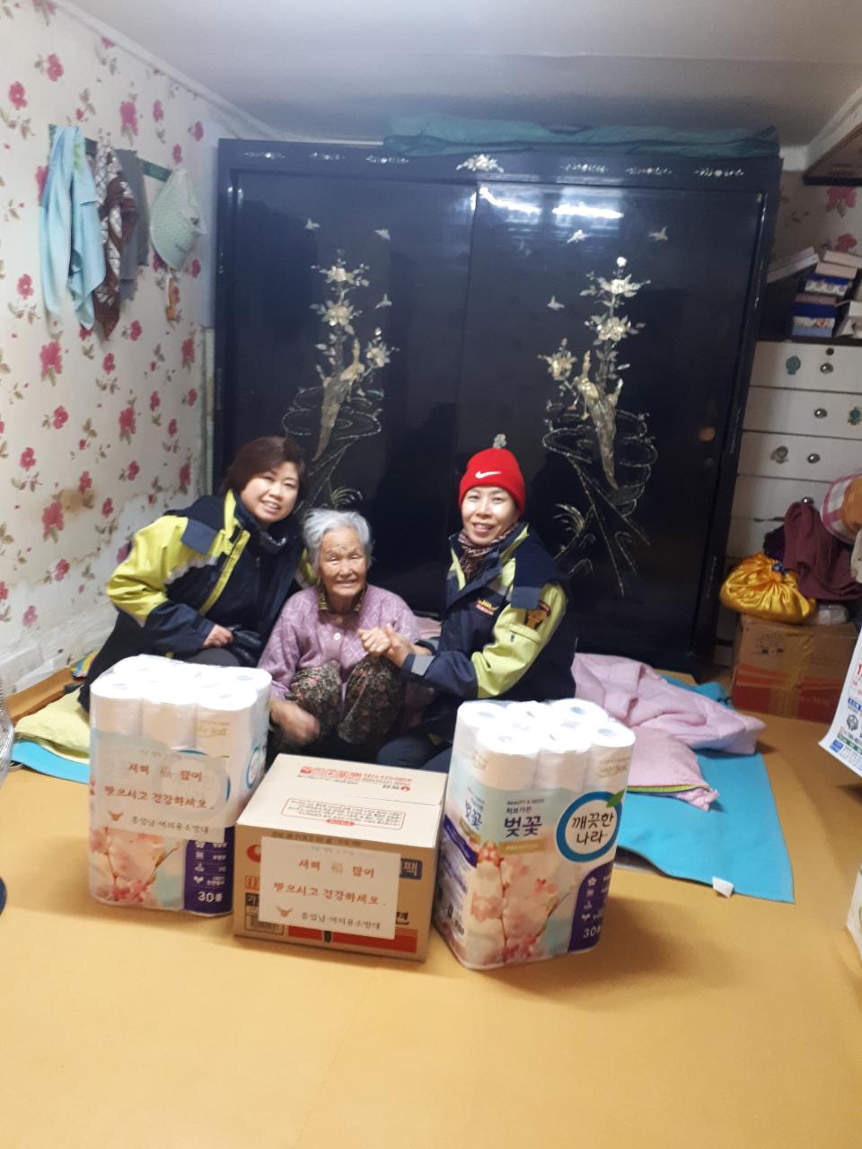 화장지, 라면등을 지급해드렸습니다.