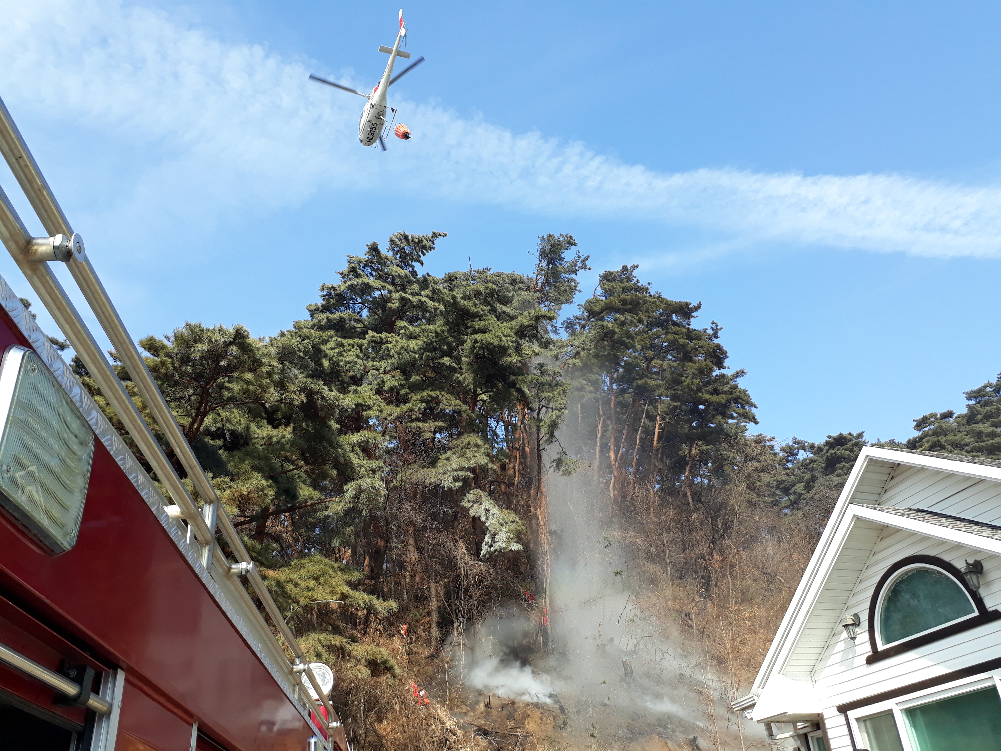 학곡리 저수지 산불 진화 현장