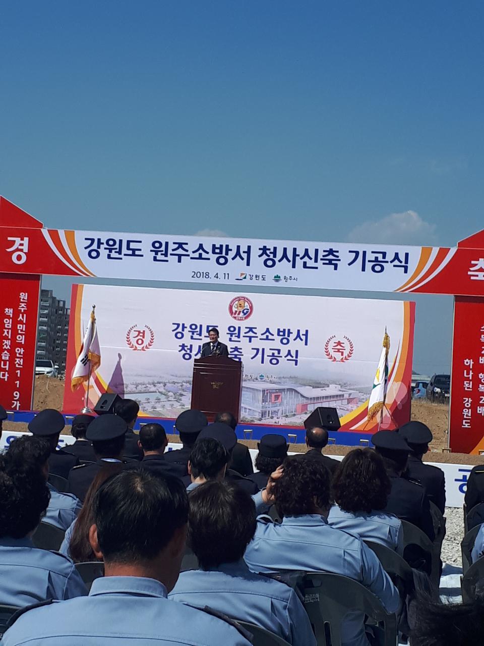 2018년 4월 11일 원주 소방서 기공식 참여