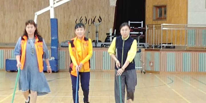 내용:체육관실내 바닥청소 및 입구 먼지 제거 쓰레기분리수거