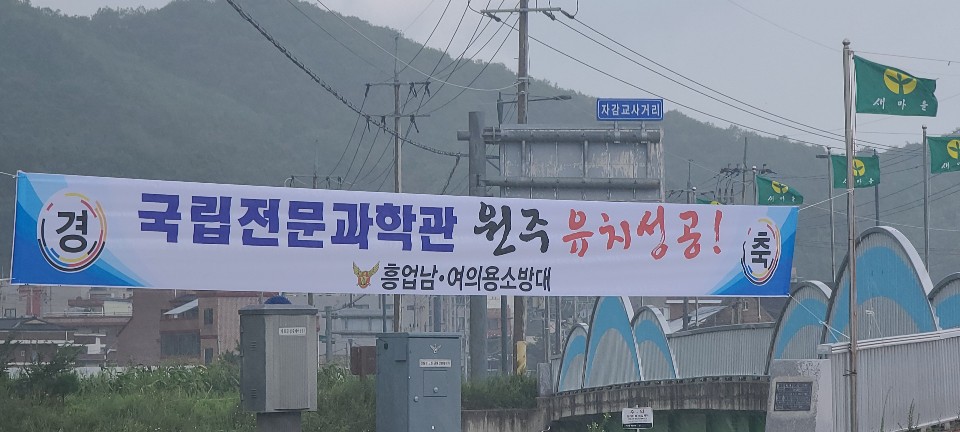흥업남성의용소방대 " 국립전문과학관 원주 유치 " 현수막 설치