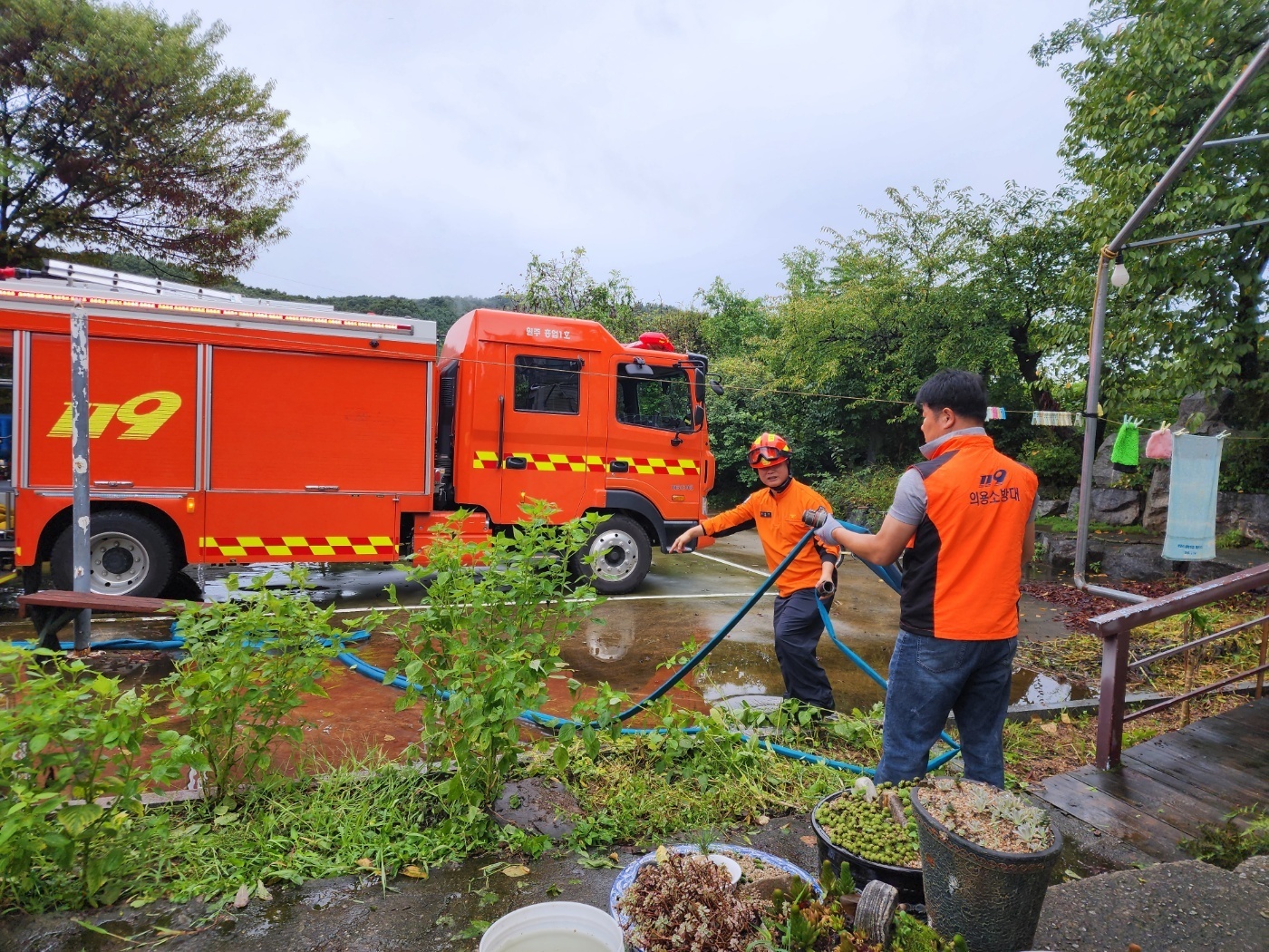 흥업남성의용소방대 화재진압지원