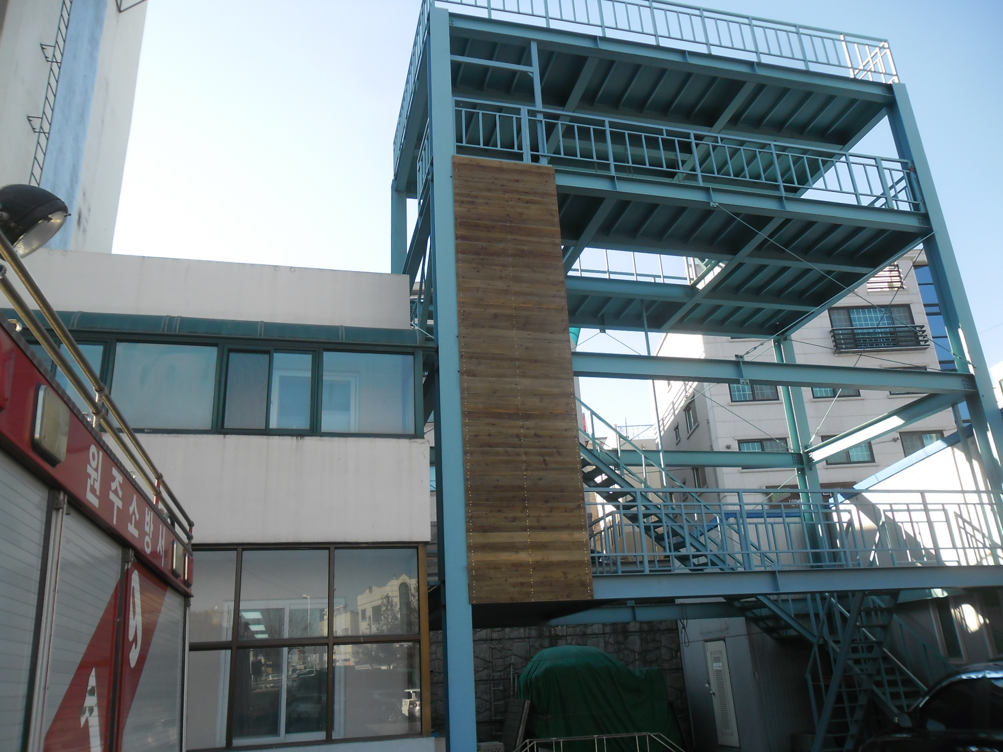 원주소방서(서장 김상철)에서는 구조대사무실 옆 기존 철구조물을 보강하여 인명구조사 실기평가를 대비한 종합훈련장을 설치하였습니다. 따라서 화재진화사는 물론 인명구조사 실습훈련 대비 큰 도움이 될 수 있으리라 생각됩니다. 현장에 강한 구조대원 양성을 위하여 힘써주신 서장님이하 모든 분들께 감사의 인사를 표합니다.