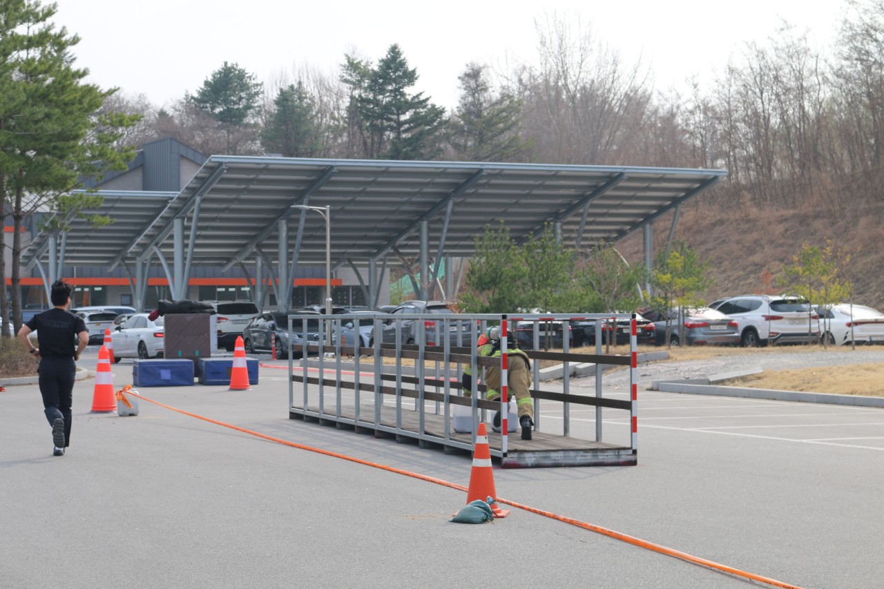 2025. 3. 24.(월) 오후 3시 제38회 전국소방기술경연대회 도 대표 선발전 개최에 따른 최강소방, 구조전술 시연회가 소방서 뒷마당에서