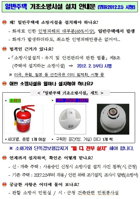 일반주택 기초소방시설 설치 안내문 (법률2012.2.5 시행)