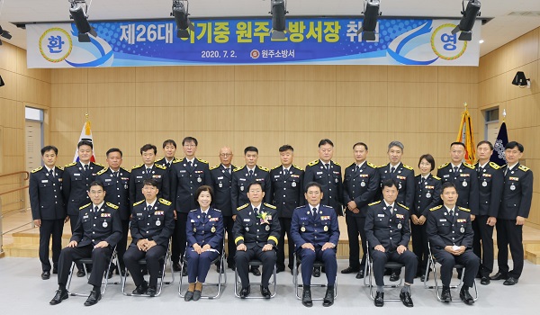 원주소방서(서장 이기중)는 2일 오전 10시 대회의실에서 소방공무원 및 의용소방대 92명이 참석한 가운데 제 26대 이기중 원주소방서장의 취임식을 개최했다.