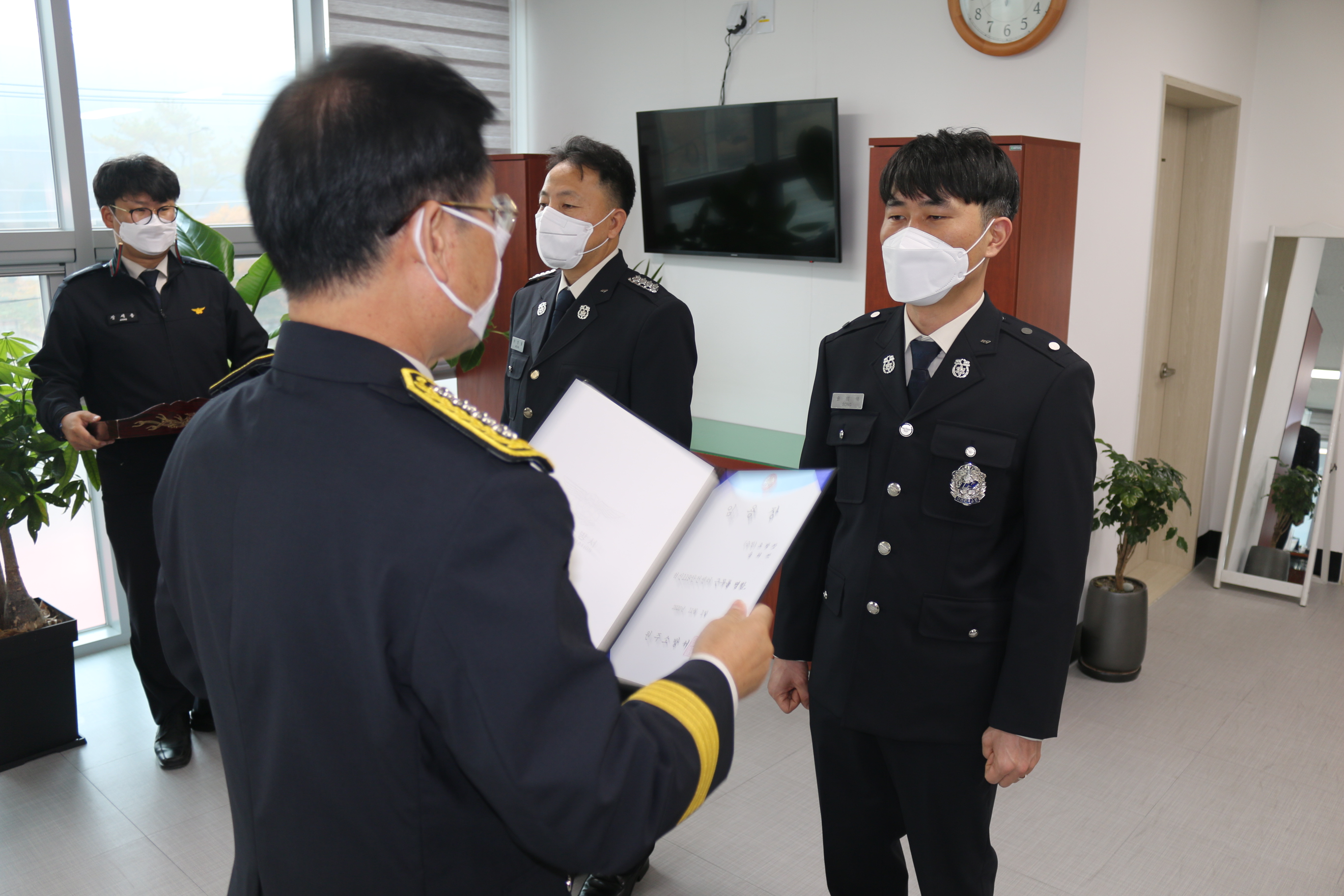 원주소방서는 11월 2일 오전 9시 승진임용자 2명(소방장 문정필, 송의석)에 대한 임용장 수여식을 개최했습니다.