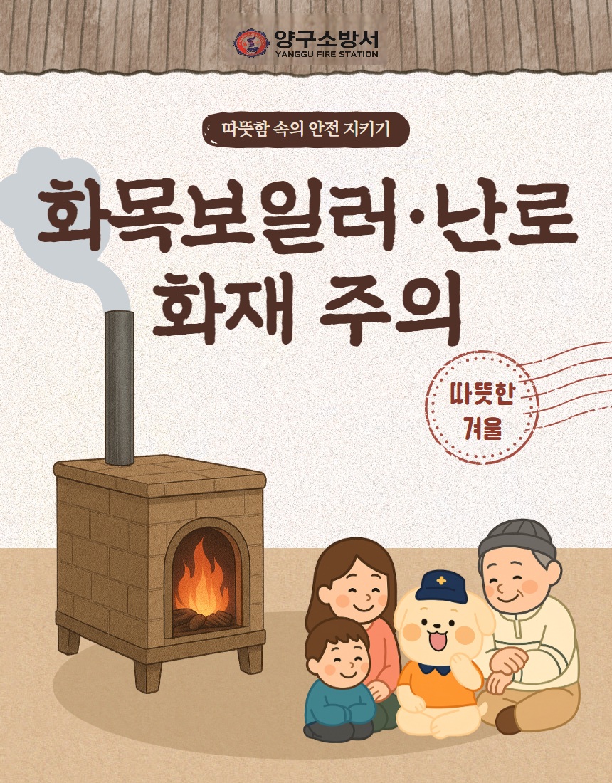 | 425 | 겨울철 화목보일러·난로 화재, 이렇게 예방하세요! | 양구 | 2025-12-11 | 92 | |