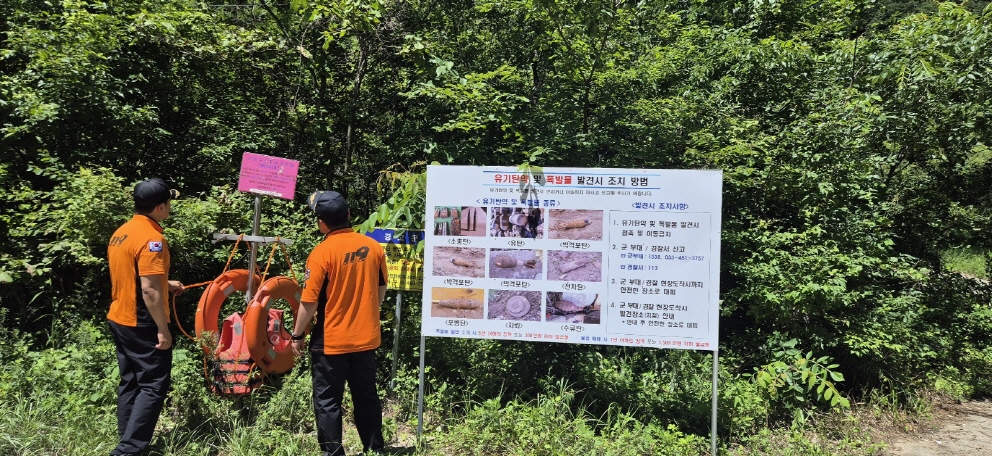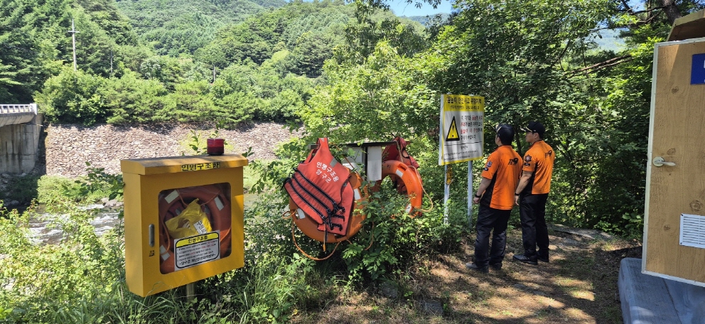 방산면 수입천 일대 및 119시민수상구조대 순찰 장소를 사전 점검했습니다.