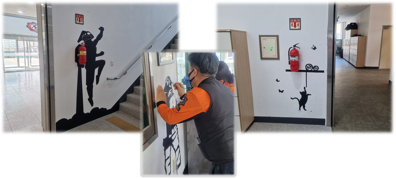 소방관이 그린 일러스트 소화기 벽화는