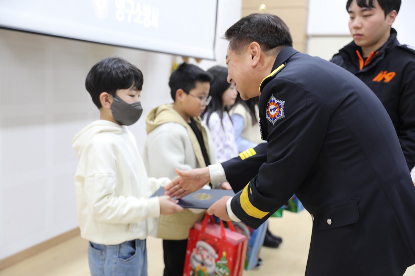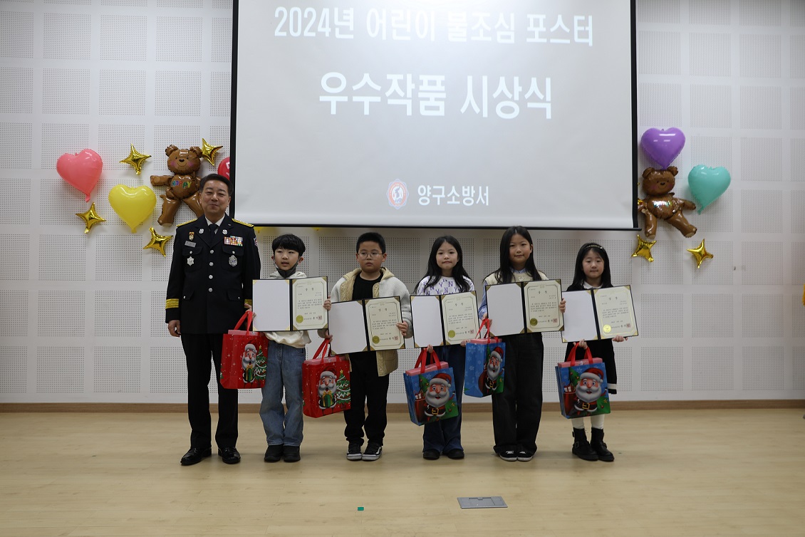 이번 시상식은 관내 어린이를 대상으로 불조심의 중요성을 홍보하고 안전한 생활 습관을 갖추도록 유도하고자 개최된 ‘2024년 어린이 불조심 포스터 공모전’의 입상자 5명에 대해 진행됐다.