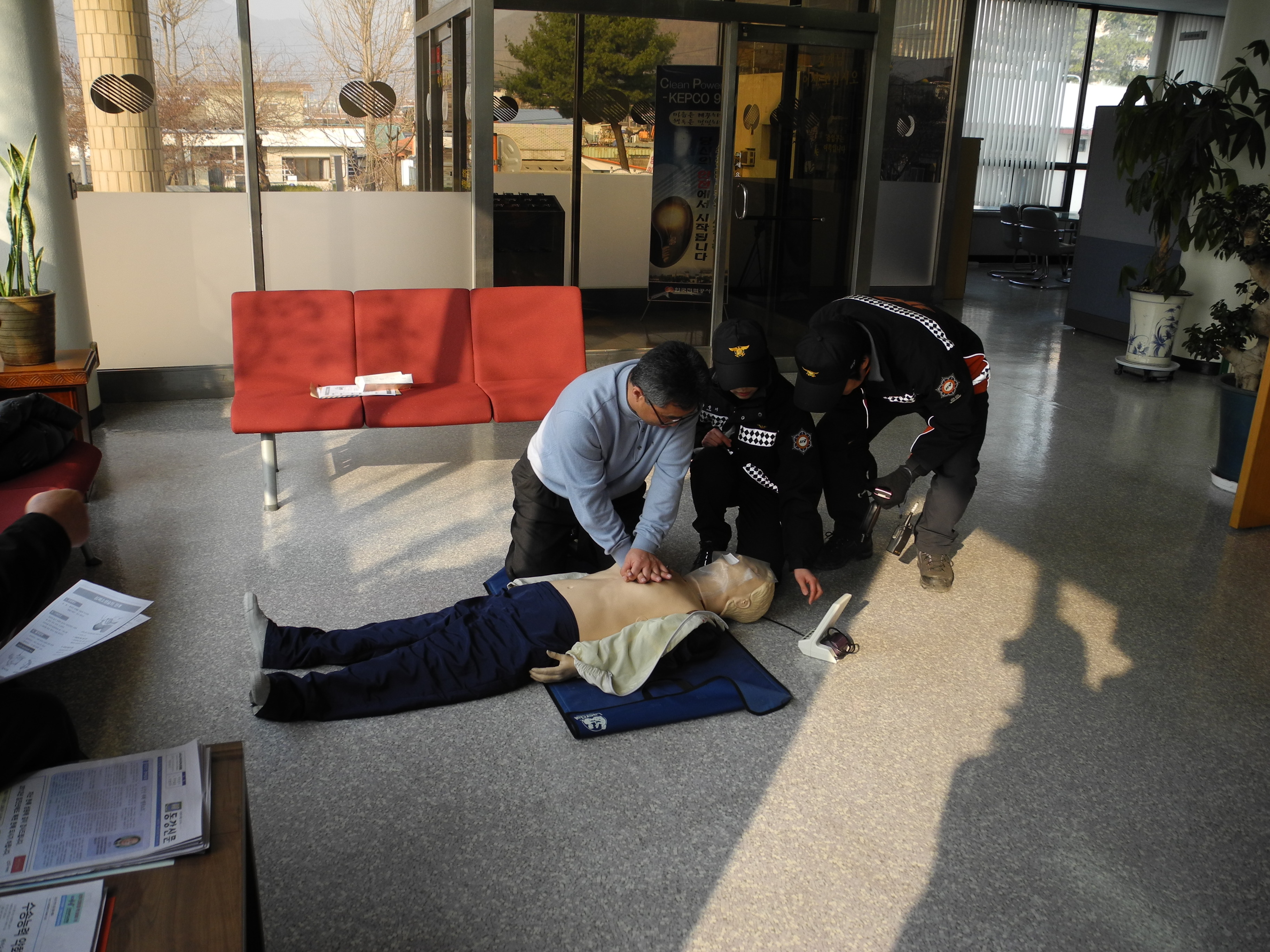 영월소방서(서장 김남백) 119구조대는 2012. 1. 5.(목) 영월안전센터와 합동으로 한국전력공사를 대상으로한 현장출동적응훈련 및 영월구급대의 CPR교육을 실시하였습니다^^