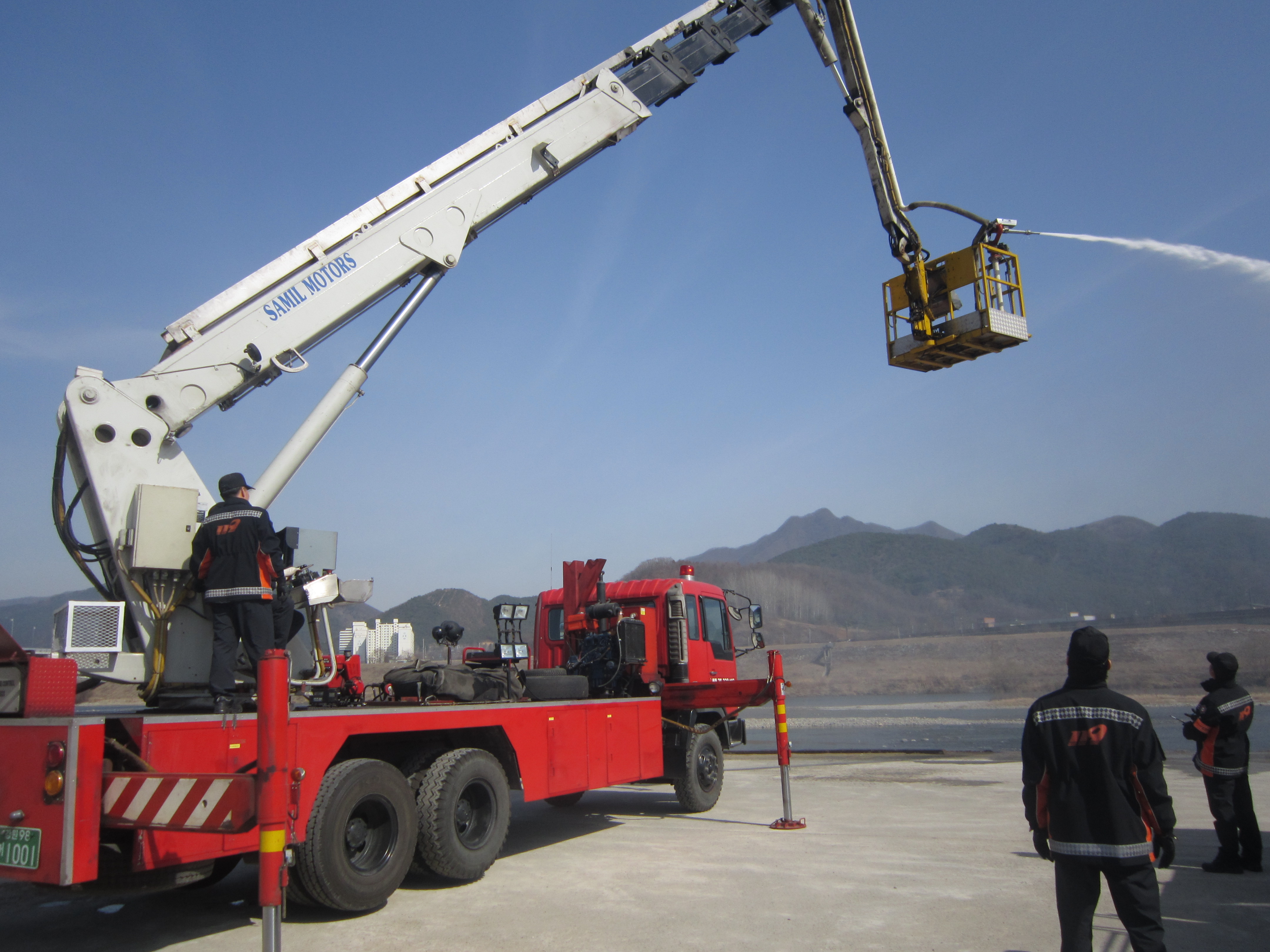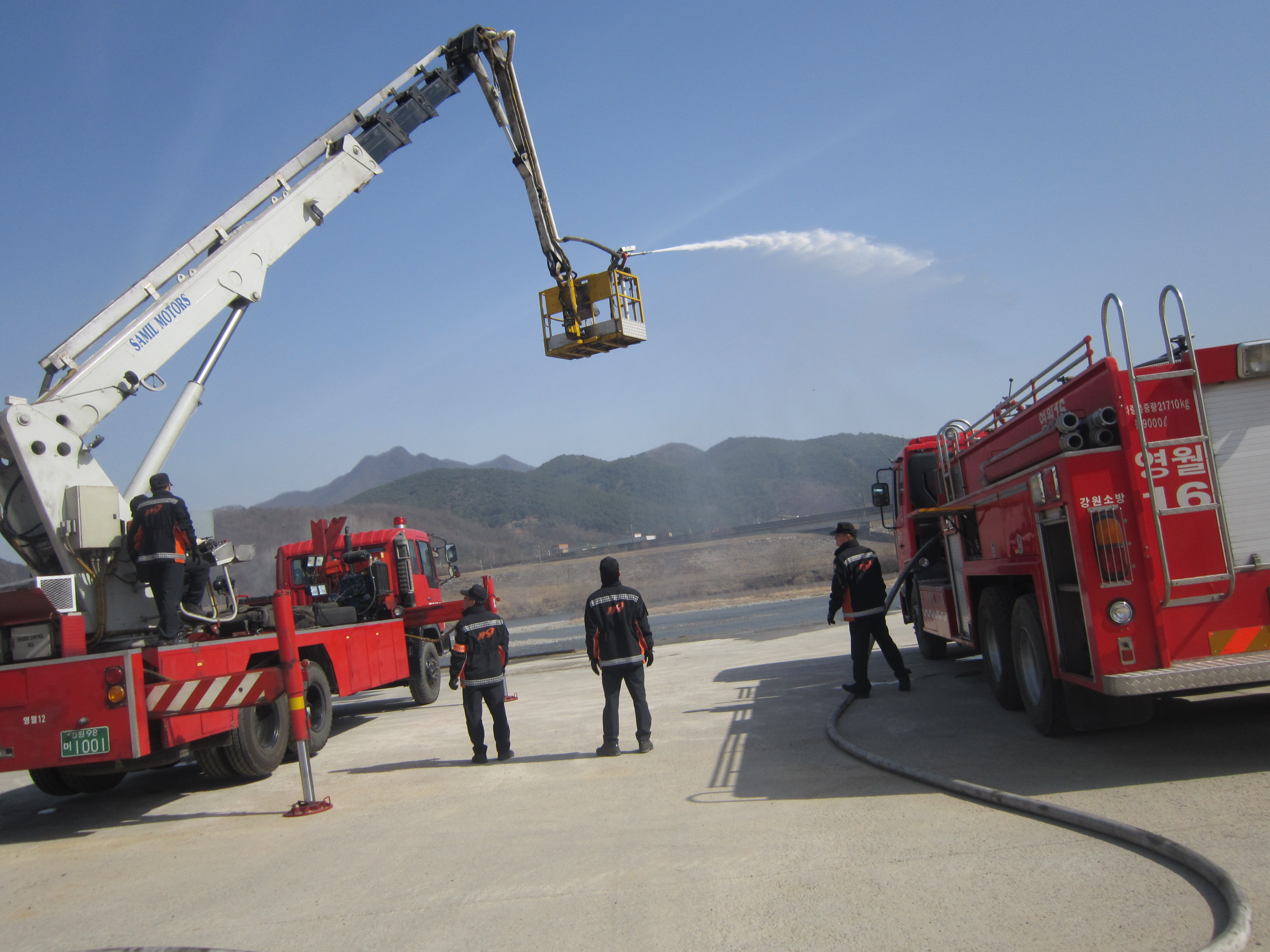 금일 영월소방서(서장 김남백) 영월119안전센터에서는 고층건물화재에 대비하여 물탱크의 지원를 통한 굴절차 방수포 조작훈련을 실시하여, 현장활동 대응능력을 배양하였습니다.