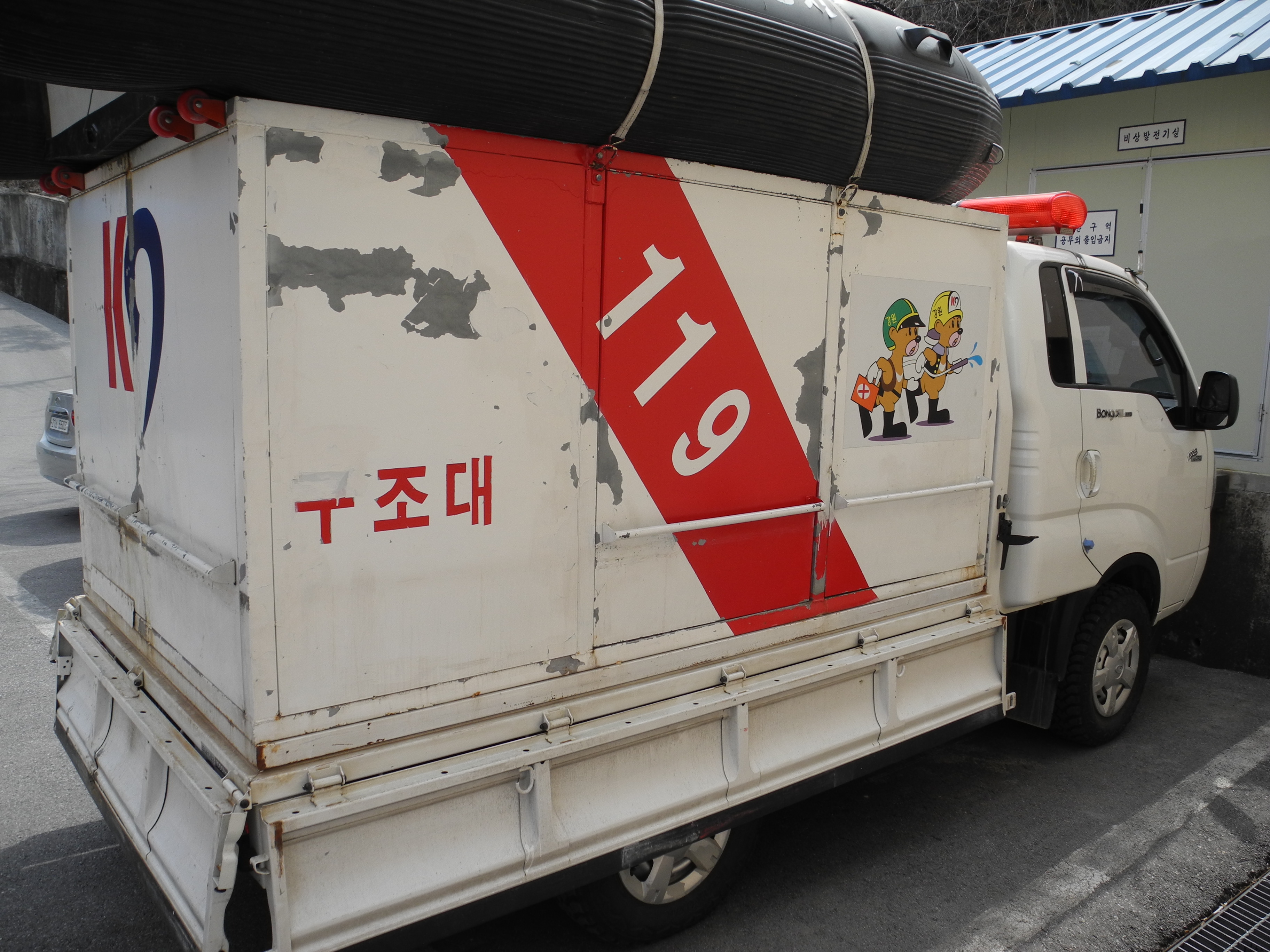 수난구조차 적재함이 오래되어 페인트가 떨어져 나가 지저분해 져서 이참에 구조대원들이 도색을 하여 새것이 되었어요.