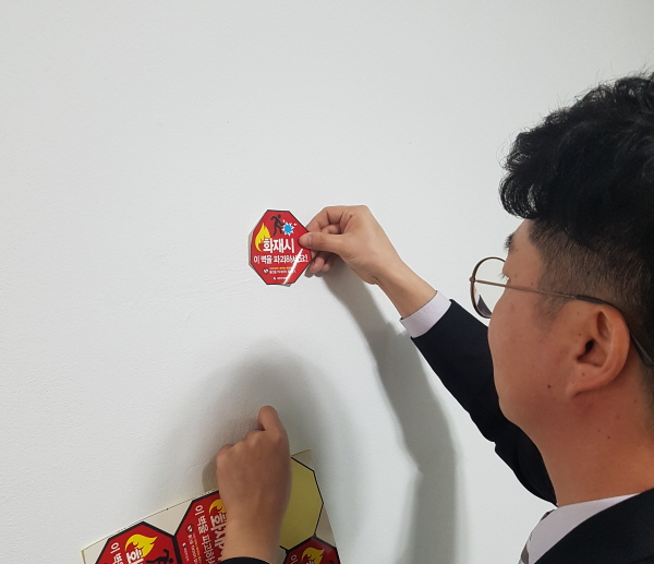 영월소방서, 아파트 경량칸막이 이용 피난안내 홍보